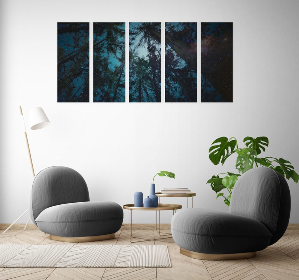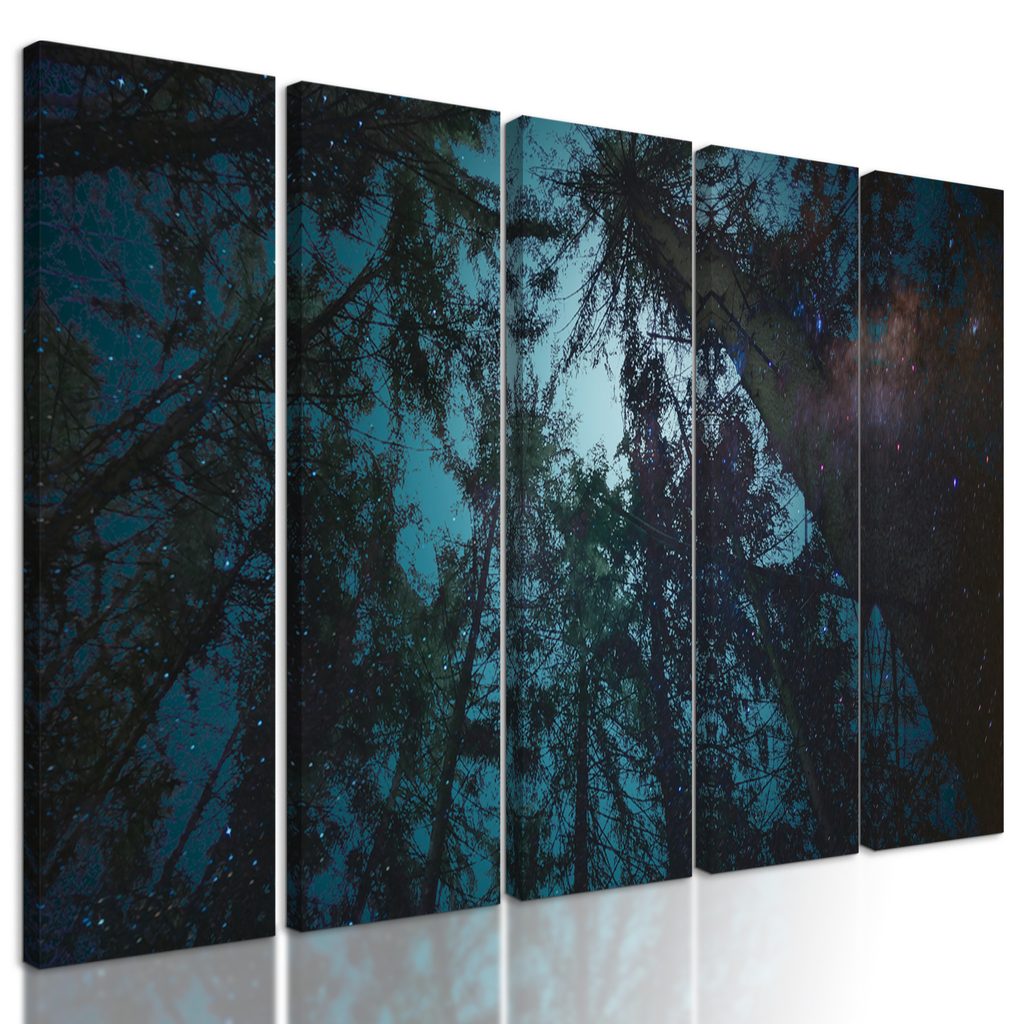 5-dielny obraz obloha medzi korunami stromov