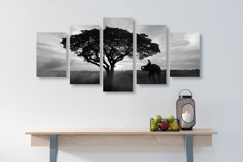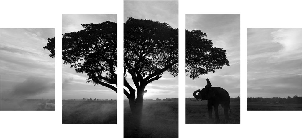 5-dielny obraz obraz nádherný slon v čiernobielom prevedení