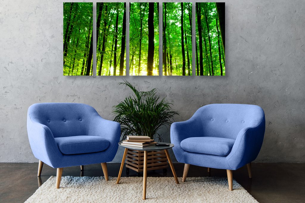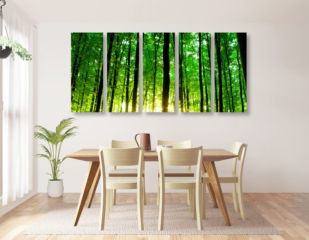 5-dielny obraz zeleňou posiate hory