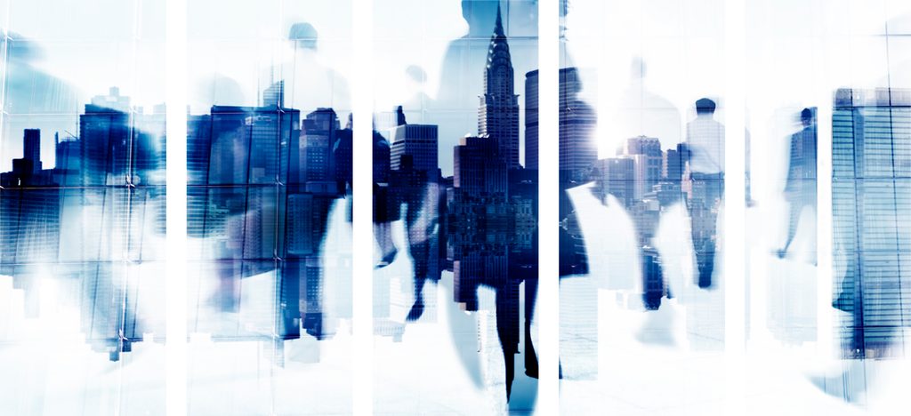 5-dielny obraz odrazy ľudí v rušnom meste