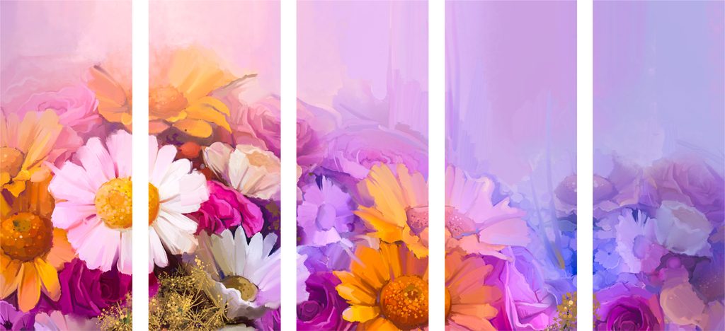 5-dielny obraz olejomaľba kvetov v pastelových odtieňoch