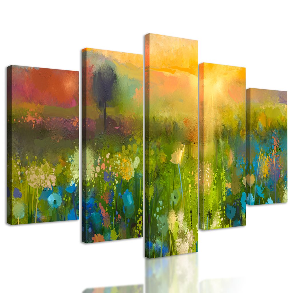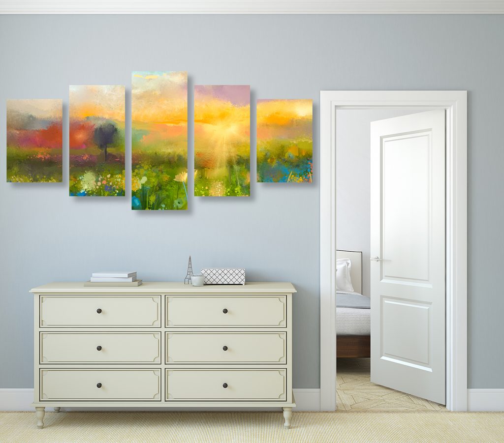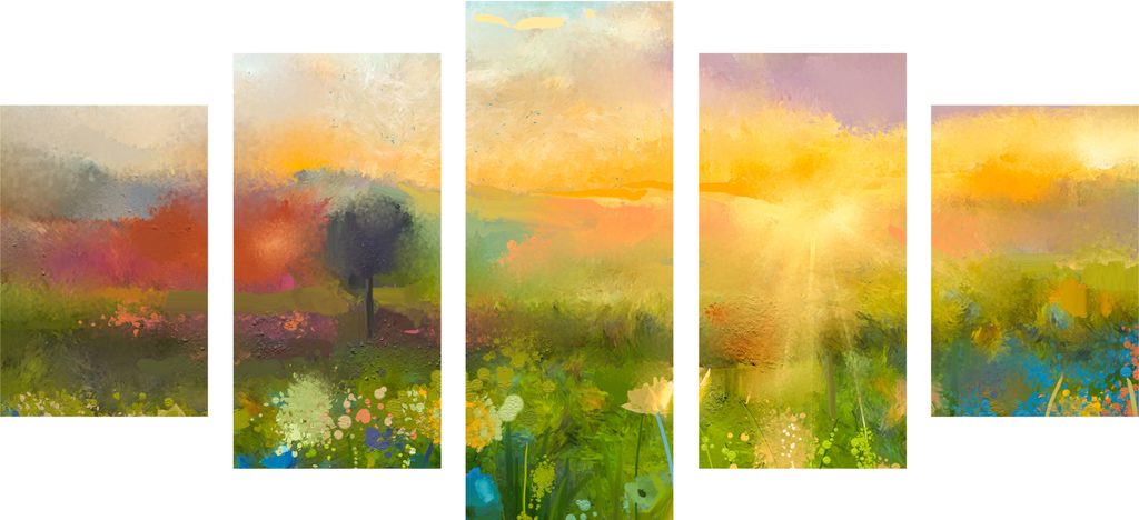 5-dielny obraz olejomaľba lúky v lúčoch slnka