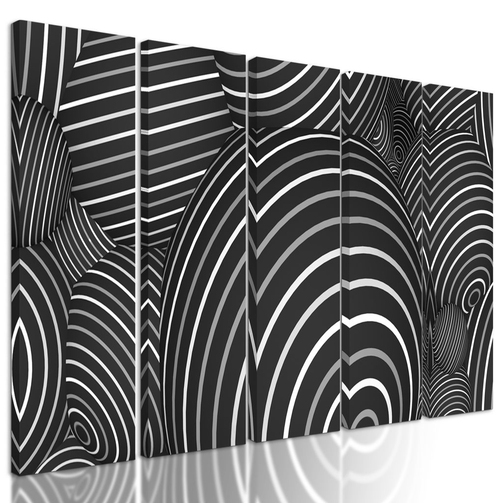 5-dielny obraz optická ilúzia tvorená guličkami v čiernobielom prevedení