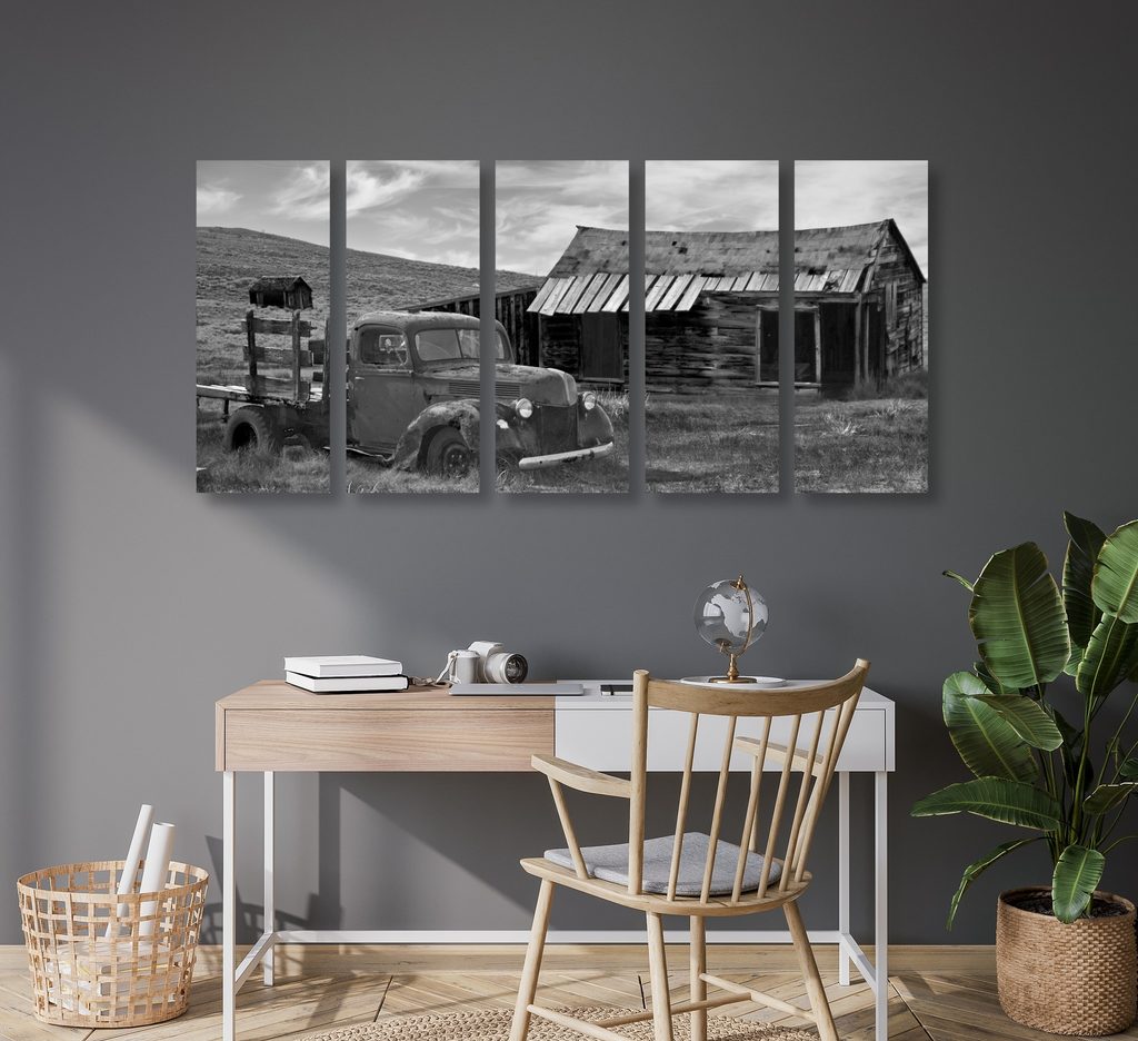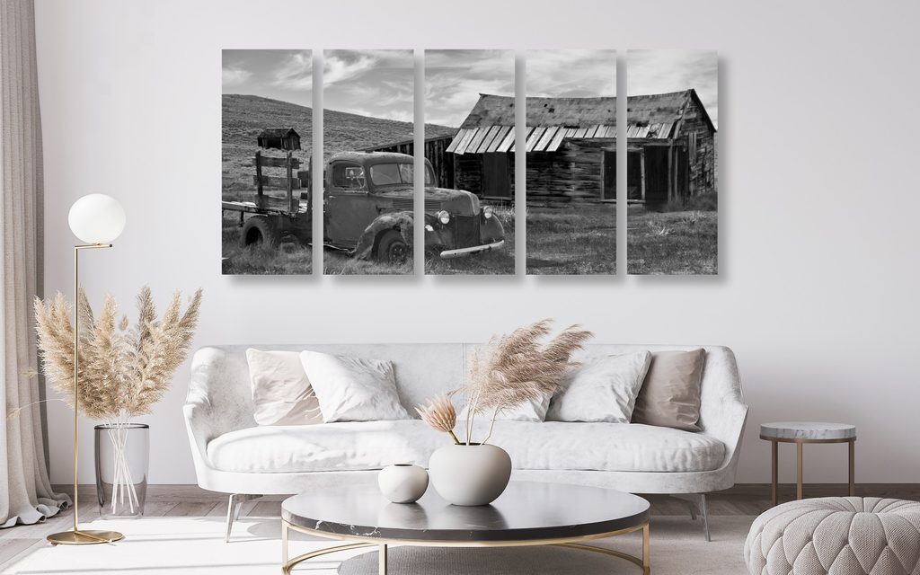 5-dielny obraz opustený vidiek v čiernobielom prevedení