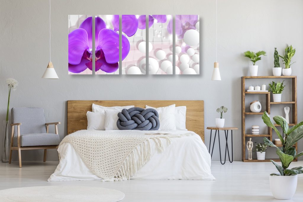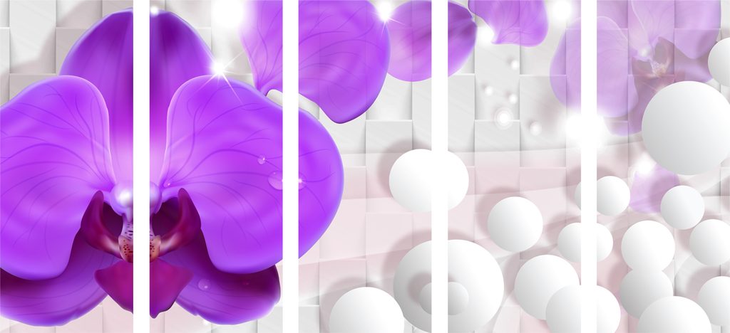 5-dielny obraz orchidea na elegantom pozadí