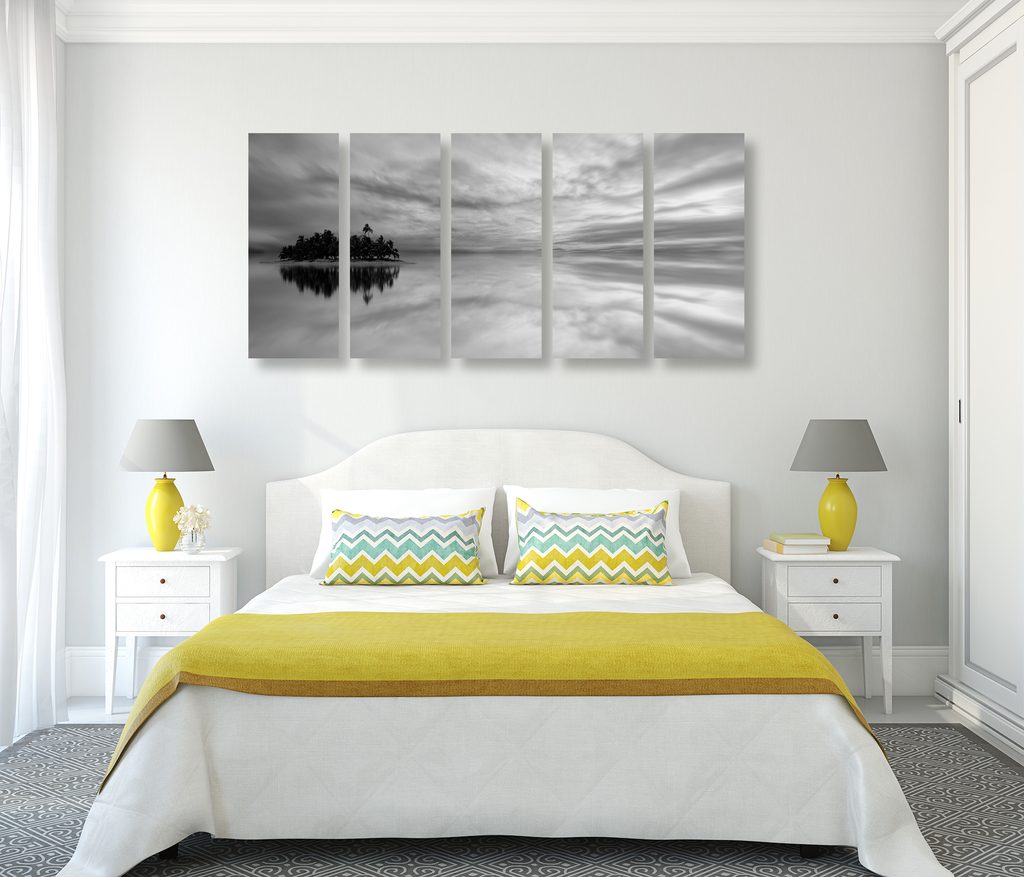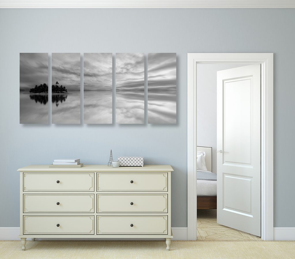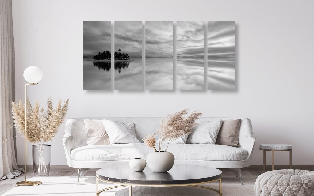 5-dielny obraz kúzelná krajina v čiernobielom prevedení