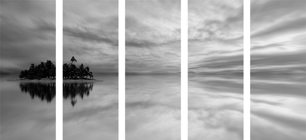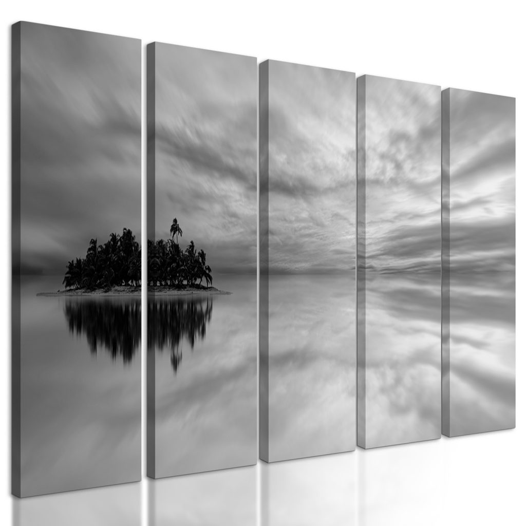 5-dielny obraz ostrov stroskotancov v čiernobielom prevedení