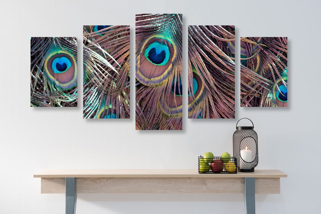 5-dielny obraz pávie perie