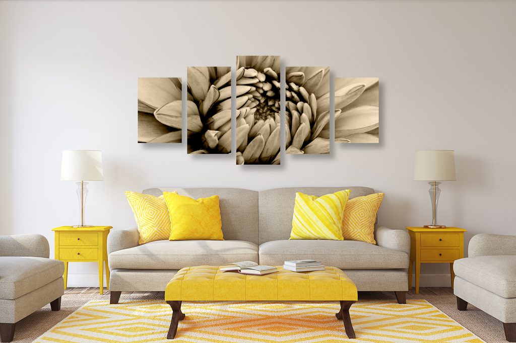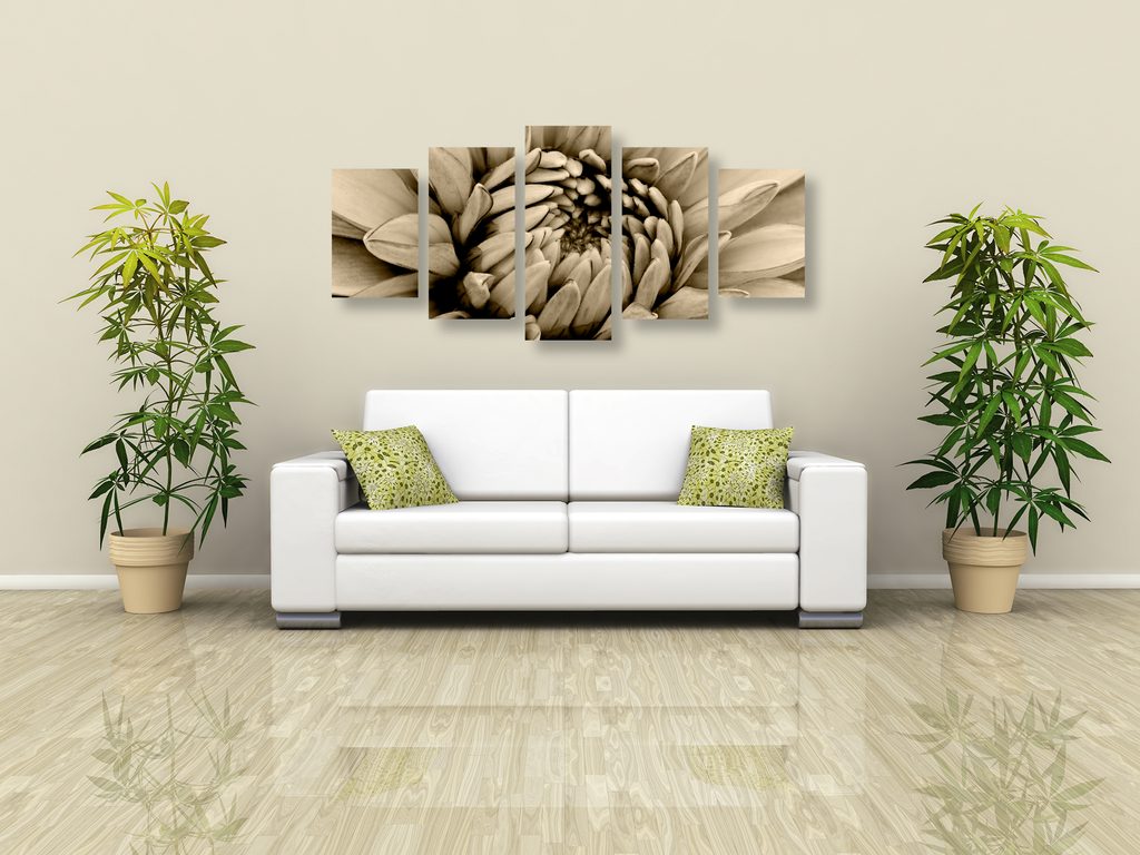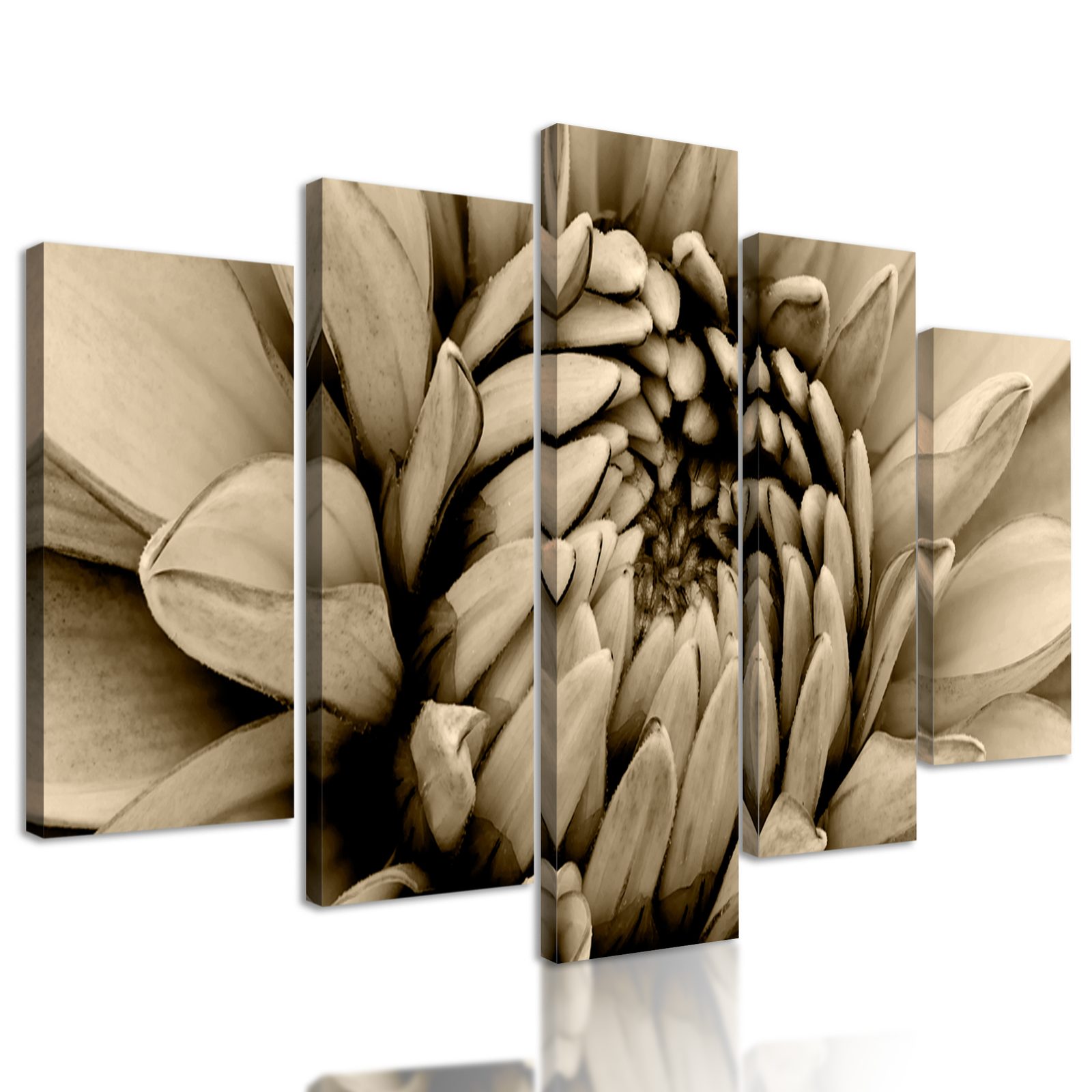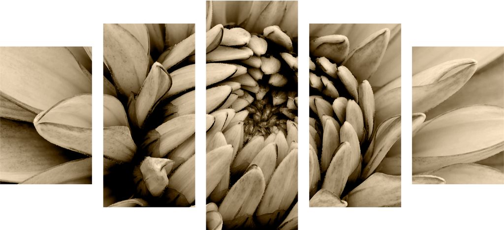 5-dielny obraz perfektný detail na kvet dálie v sépiovom prevedení