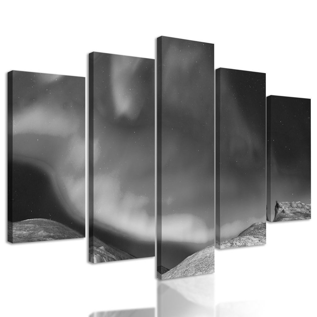 5-dielny obraz polárna žiara v čiernobielom prevedení