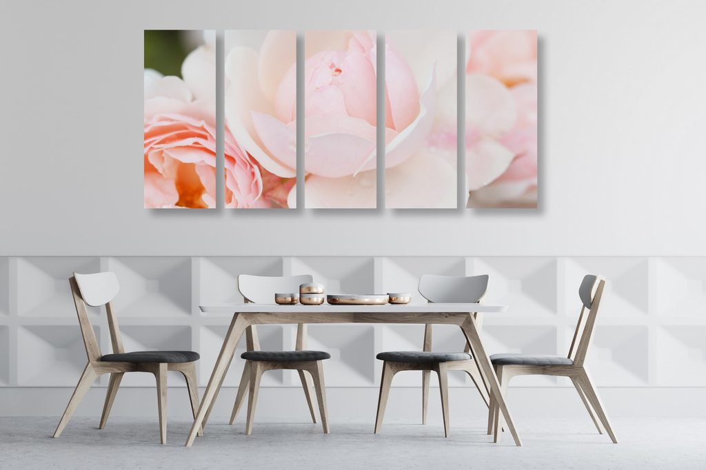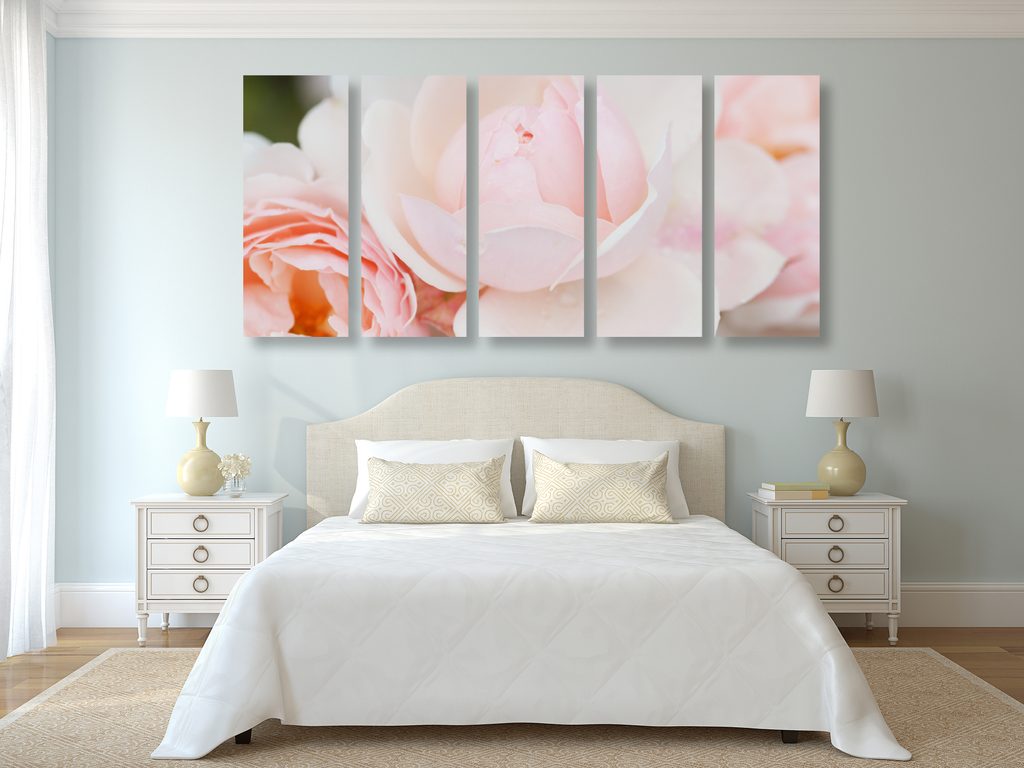 5-dielny obraz olejomaľba kvetov v pastelových odtieňoch