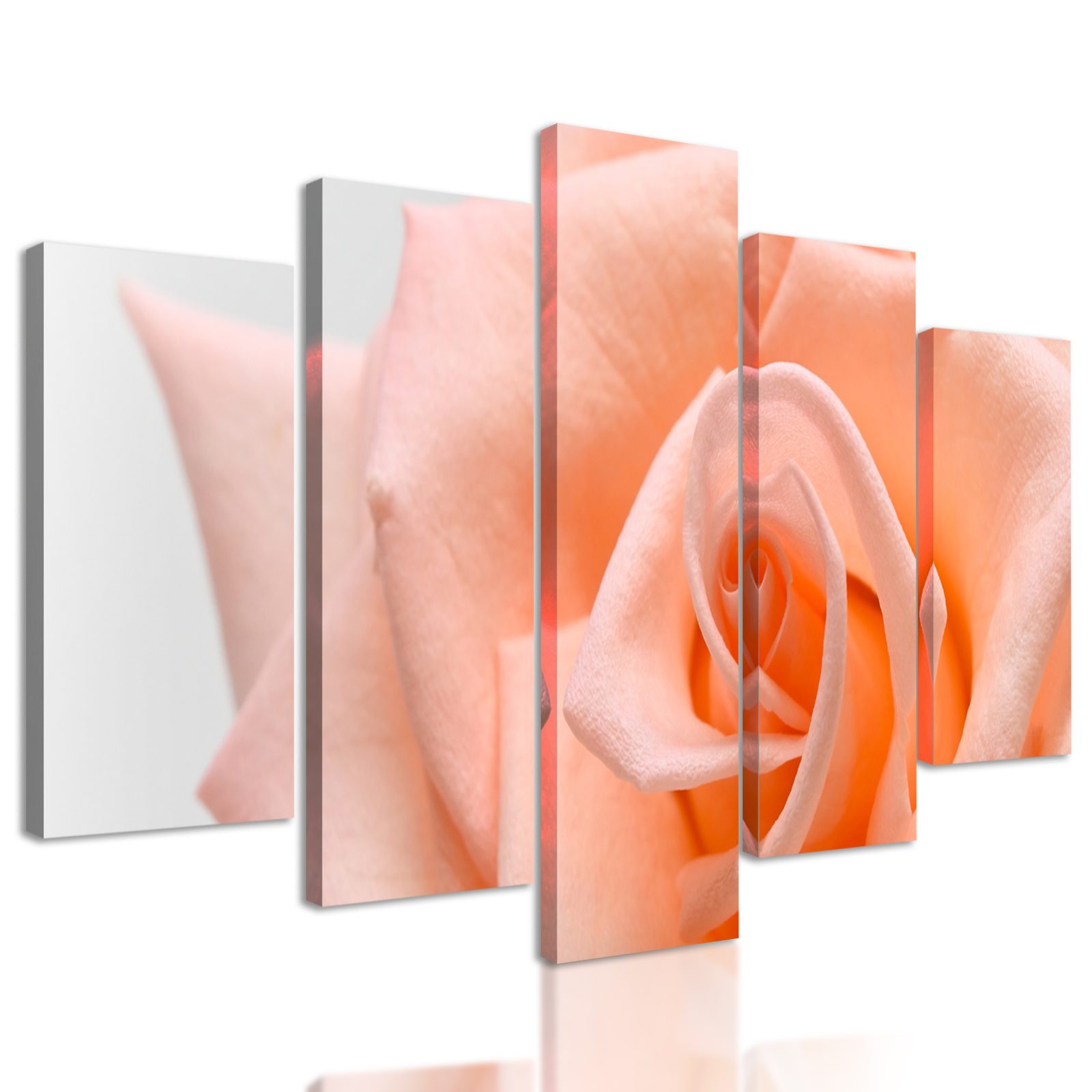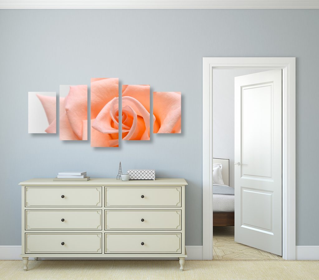5-dielny obraz pôvabné ružové pivónie v čiernobielom prevedení