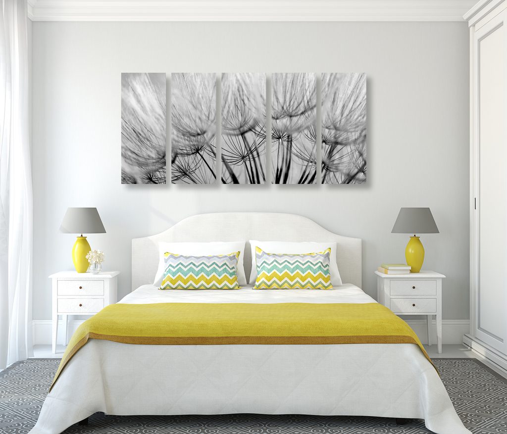 5-dielny obraz čiernobiela letná lúka v plnej kráse