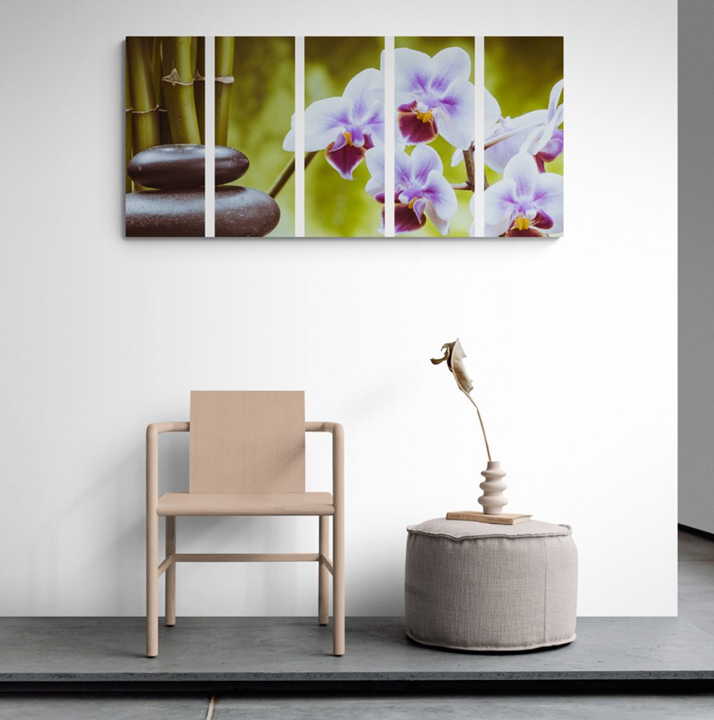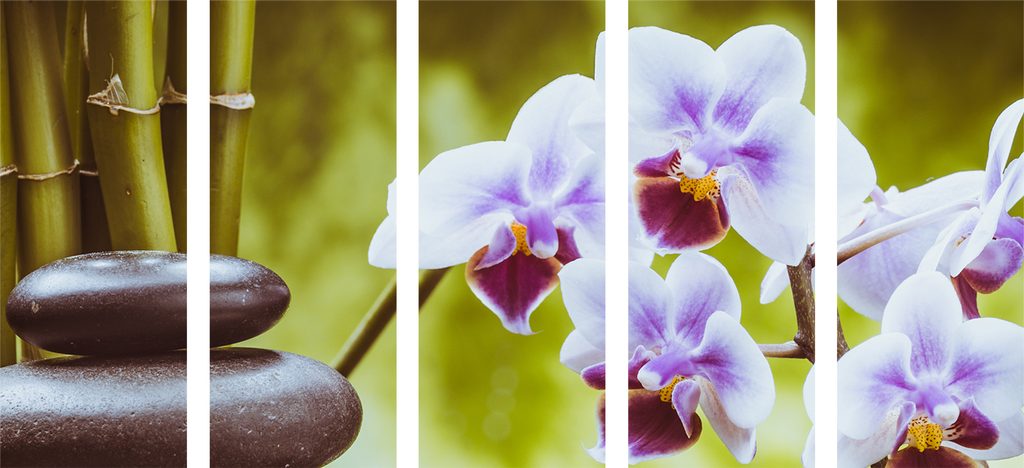 5-dielny obraz čiernobiely kvet orchidei v SPA zátiší