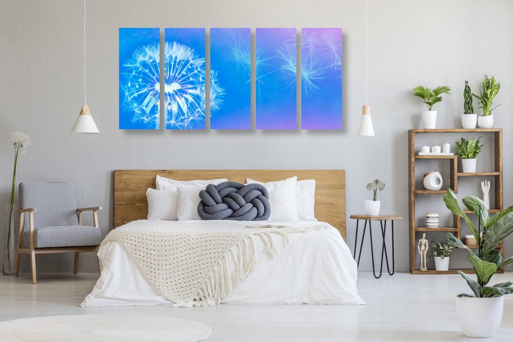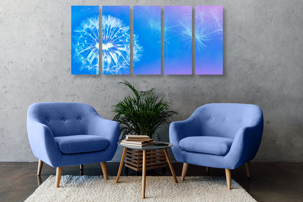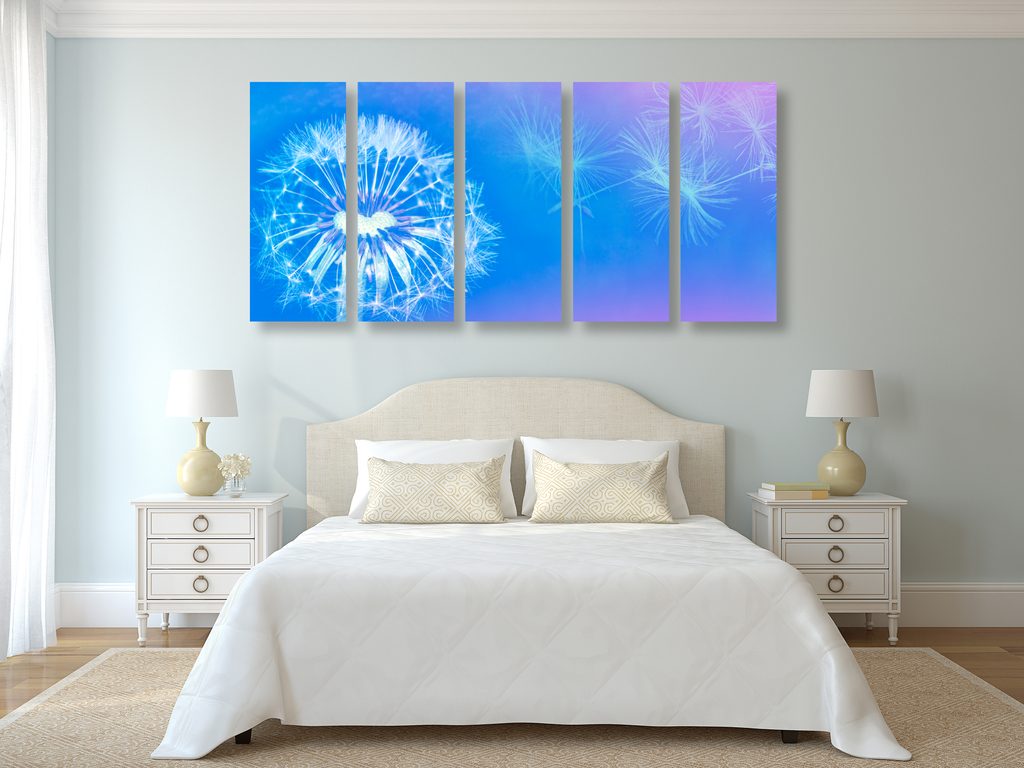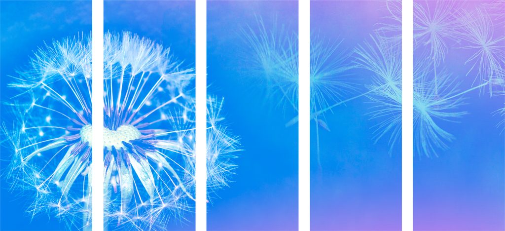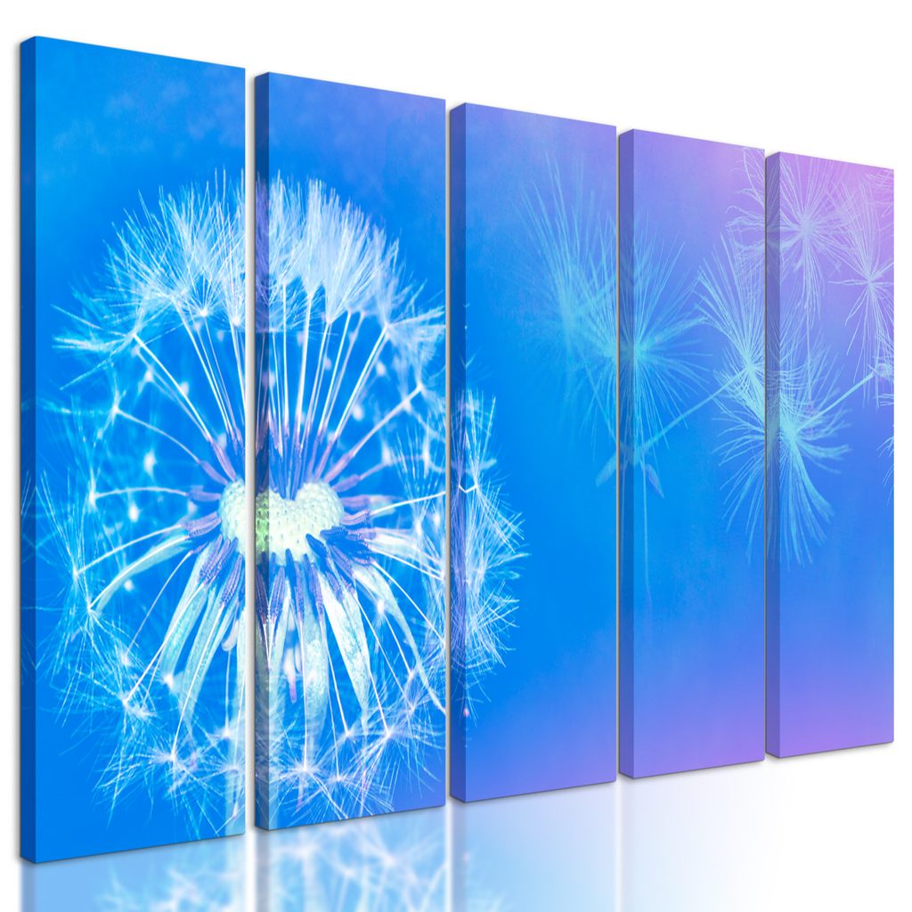 5-dielny obraz púpava v modro bielych farbách