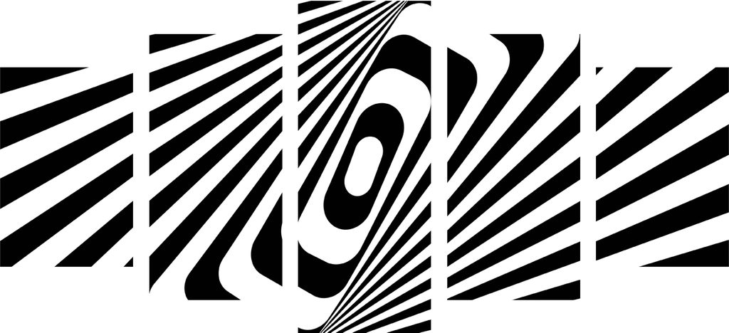 5-dielny obraz krásy abstraktných tvarov v čiernobielom prevedení