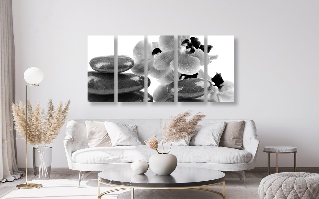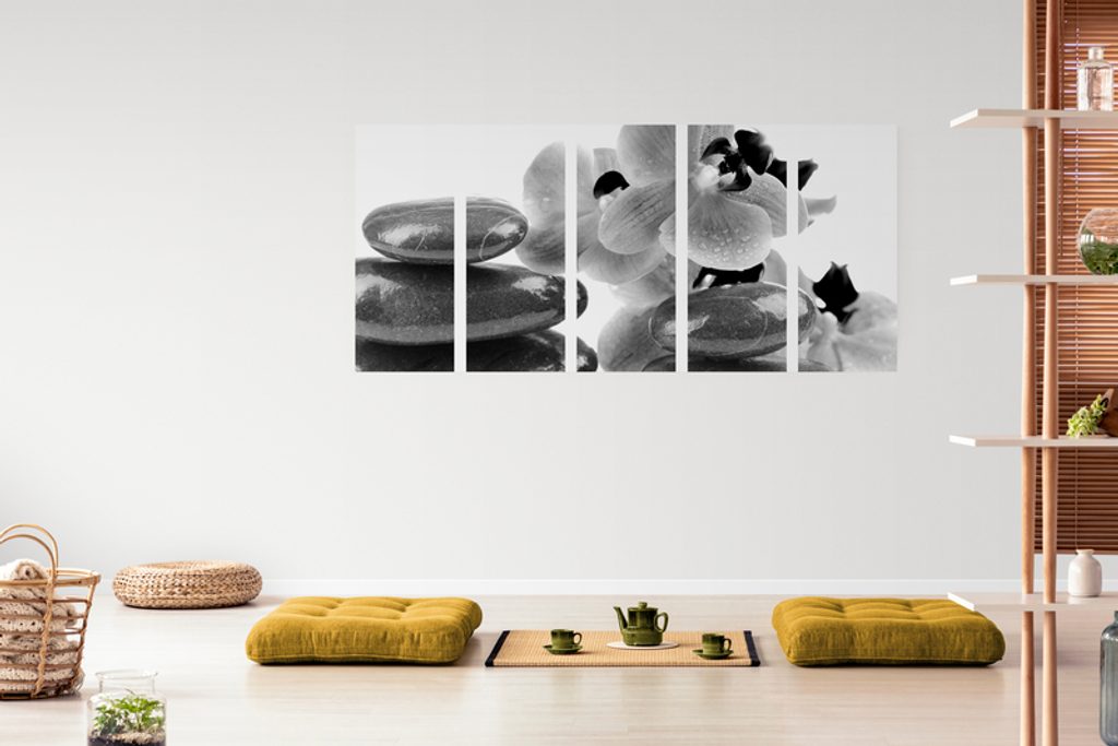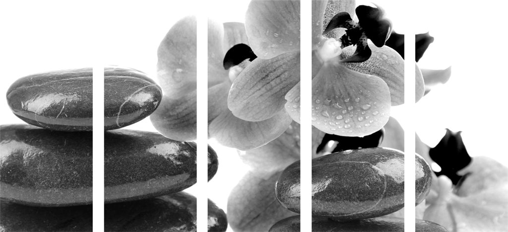 5-dielny obraz relaxačne SPA zátišie v čiernobielom prevedení