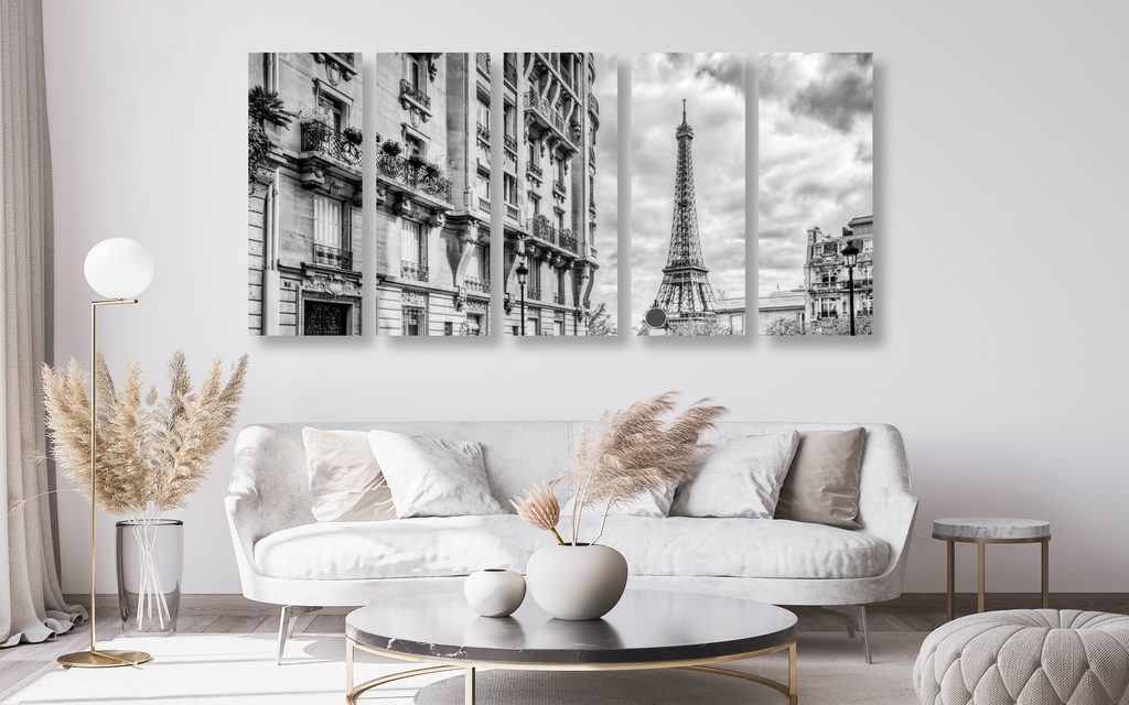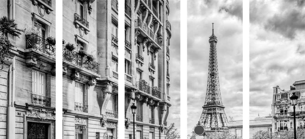 5-dielny obraz nočný New York v čiernobielom prevedení