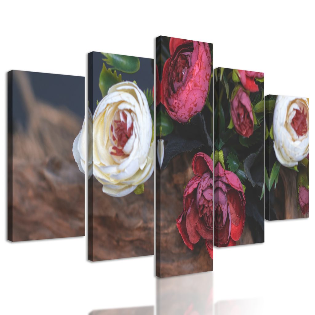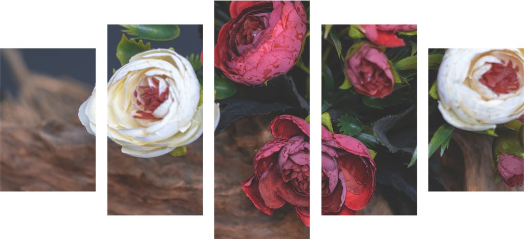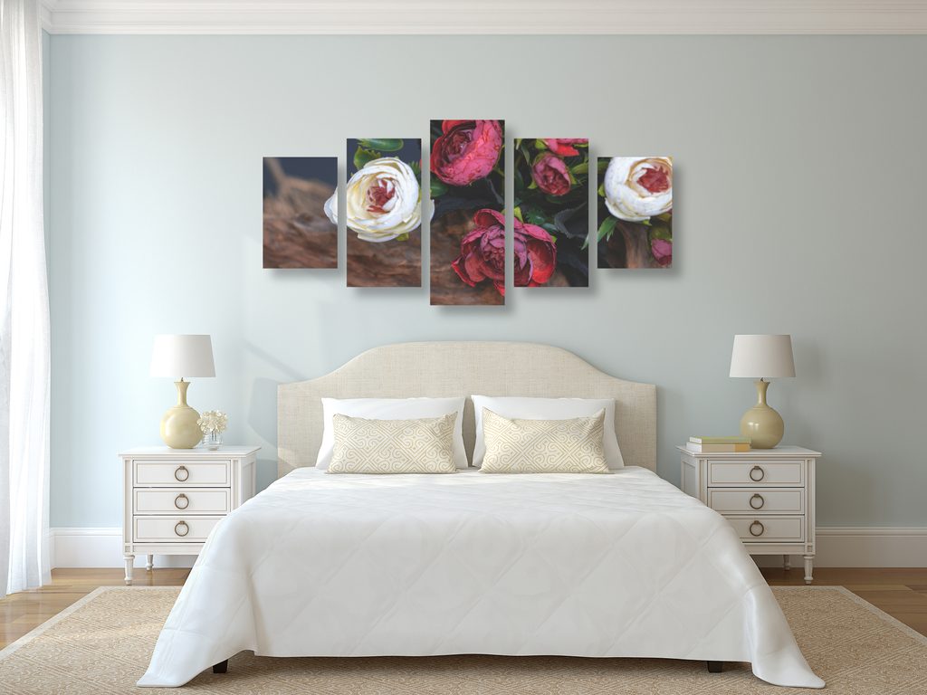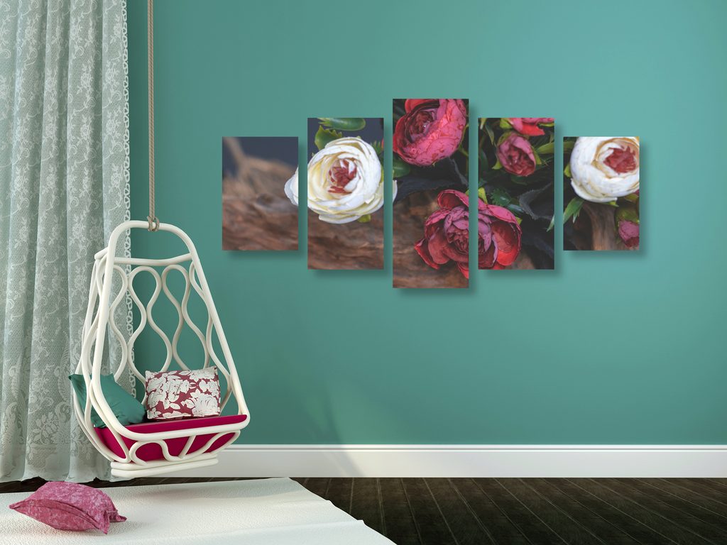 5-dielny obraz biele kvety na zaujímavom pozadí