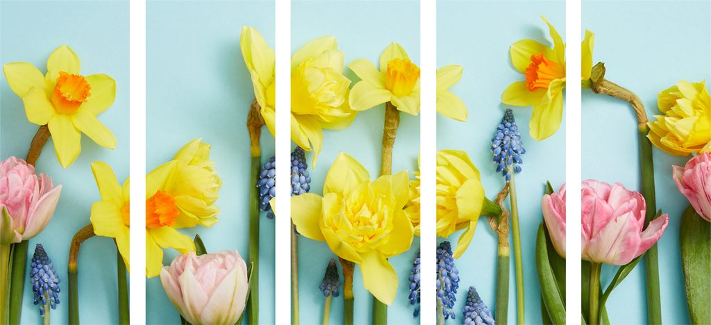 5-dielny obraz rozmanitosť jarných kvetov