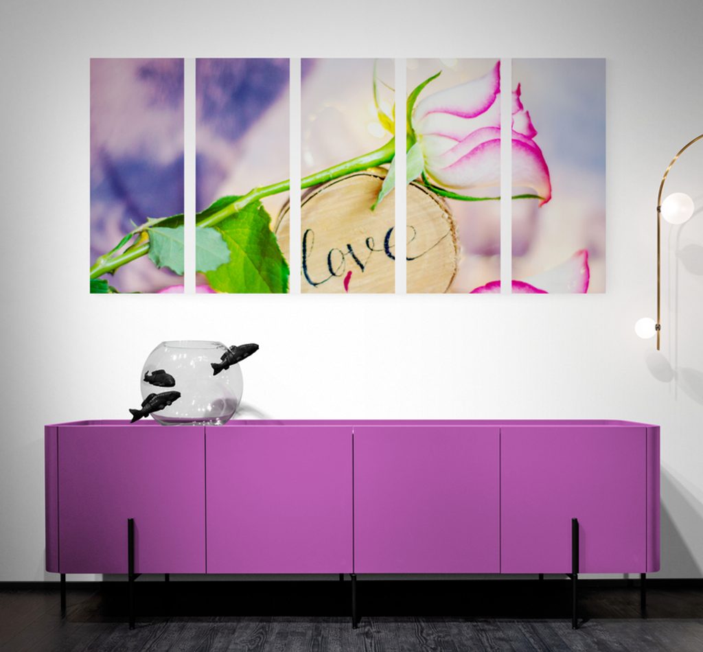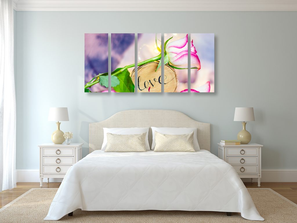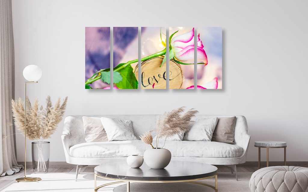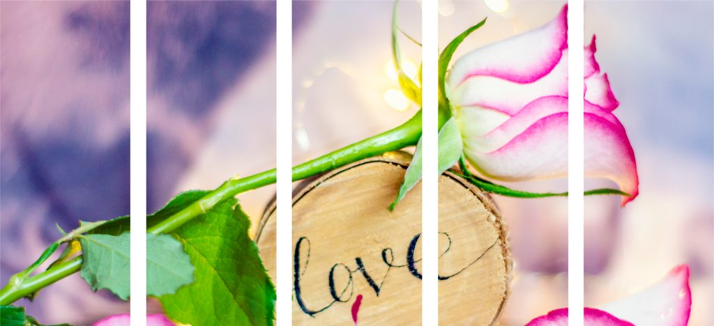 5-dielny obraz ruža a nápis Love
