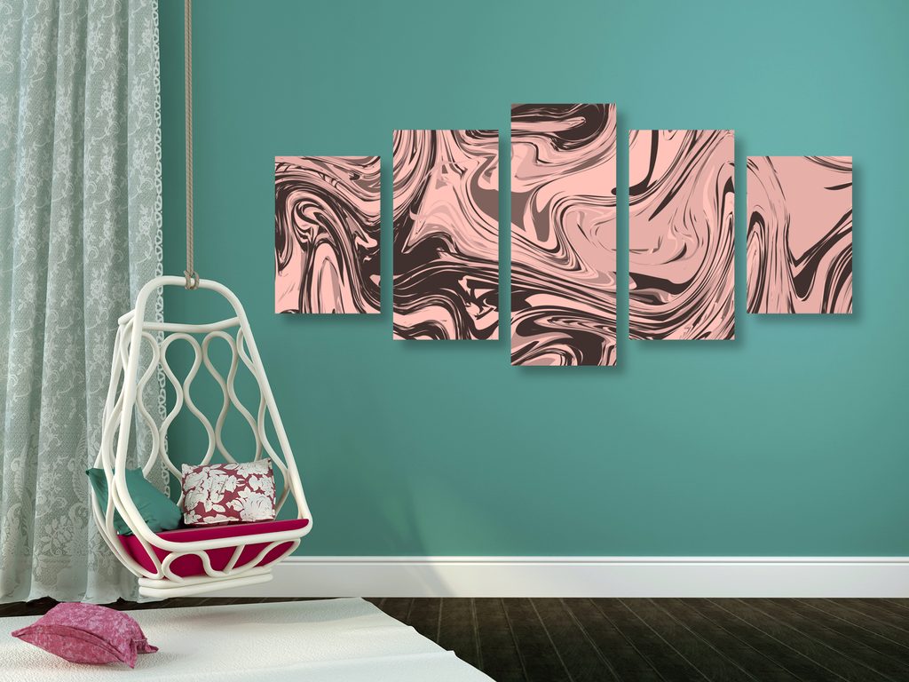 5-dielny obraz ružová umelecká abstrakcia