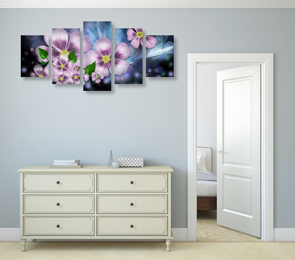 5-dielny obraz maľované pestrofarebné kvety