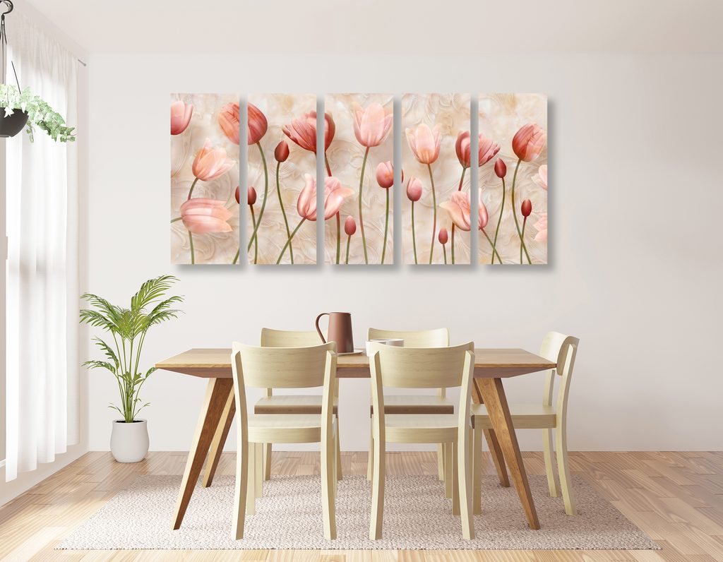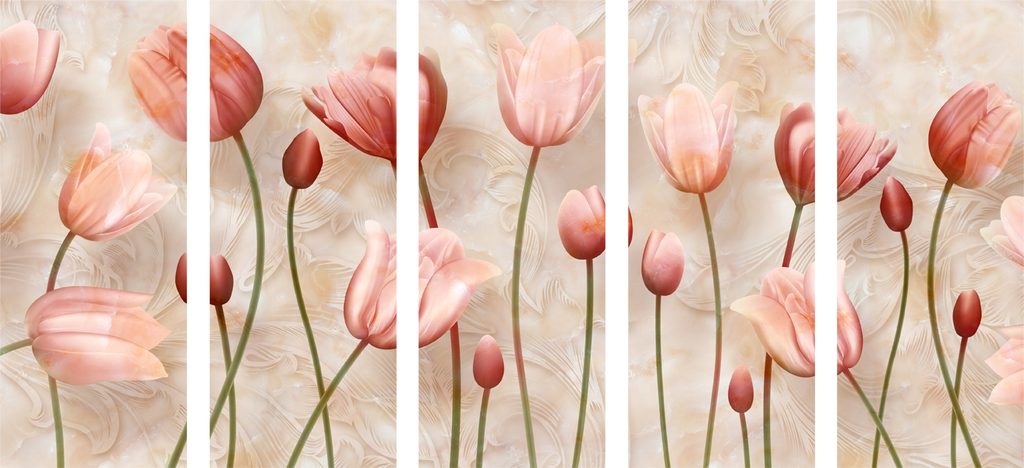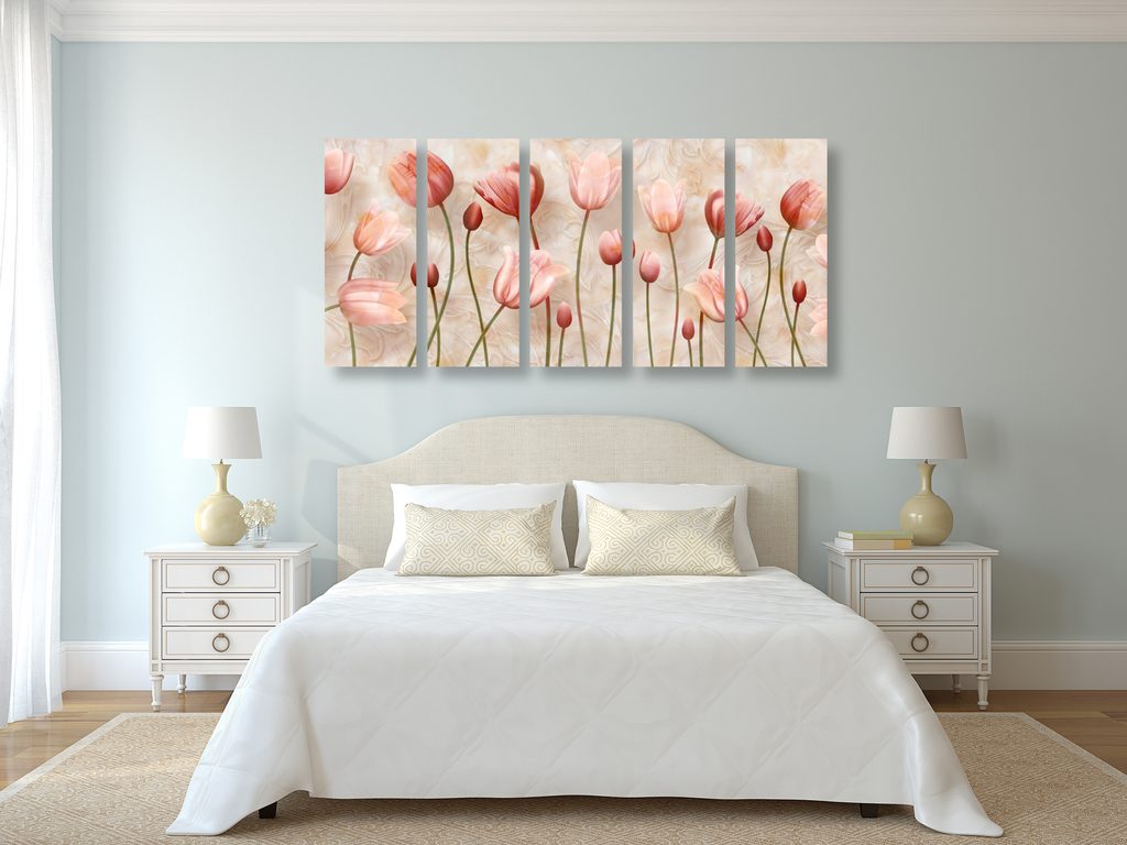 5-dielny obraz umelecká abstrakcia červených kvetov