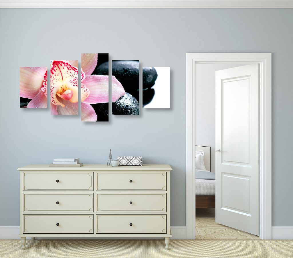5-dielny obraz ružový kvet orchidei