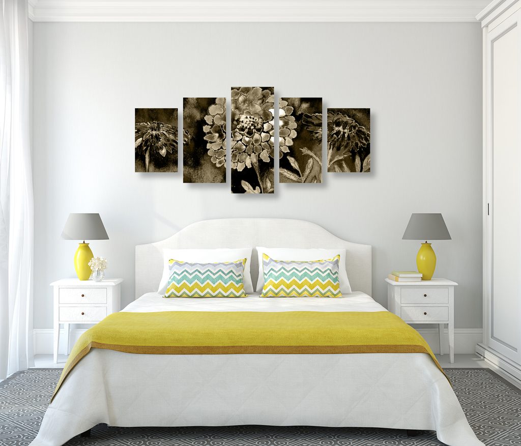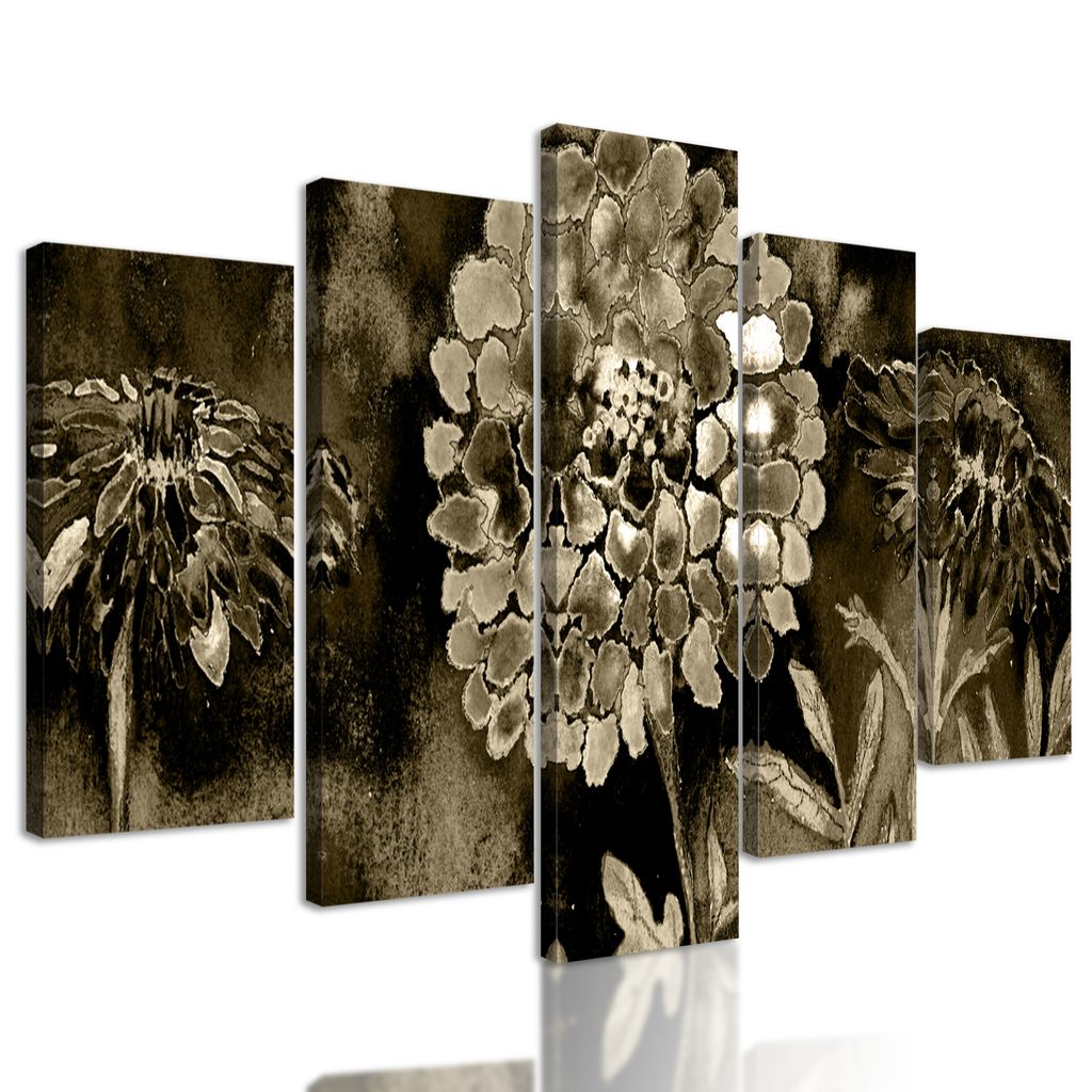 5-dielny obraz sépiova olejomaľba kvetov