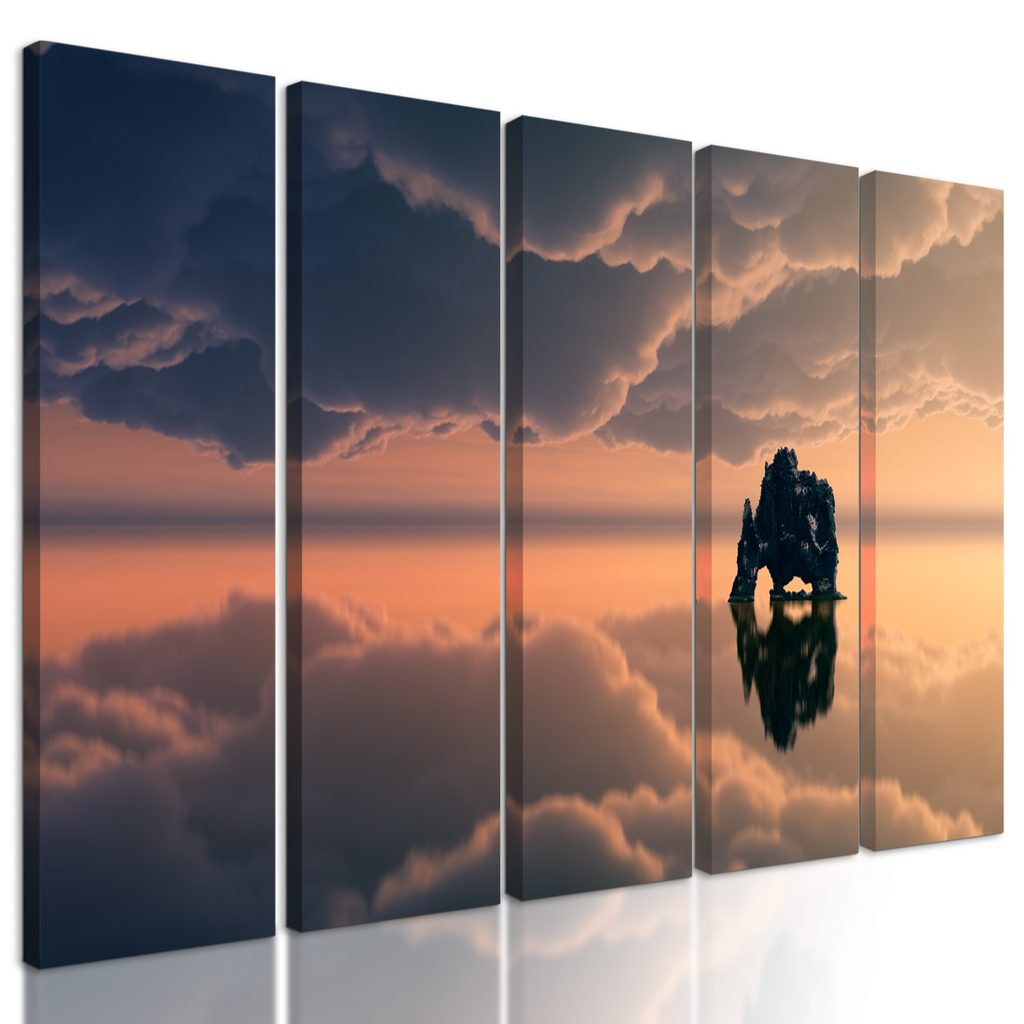 5-dielny obraz skala uprostred mora