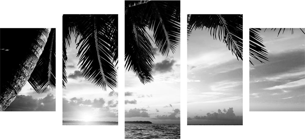 5-dielny obraz slenčný deň v tropickom raji v čiernobielom prevedení