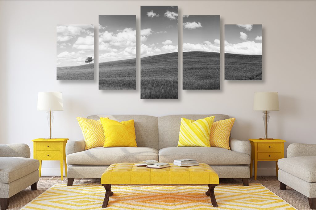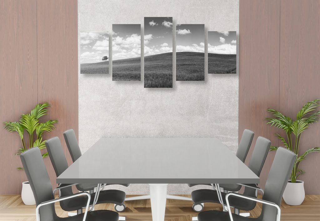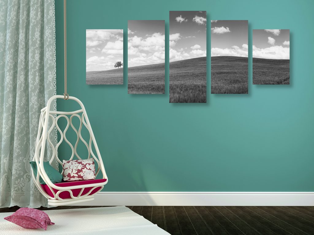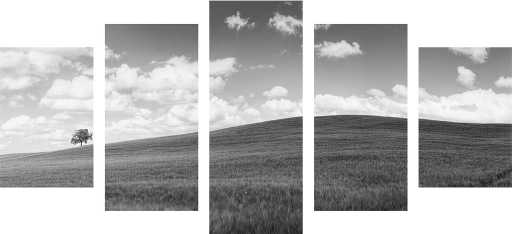 5-dielny obraz slnečný deň na lúke v čiernobielom prevedení