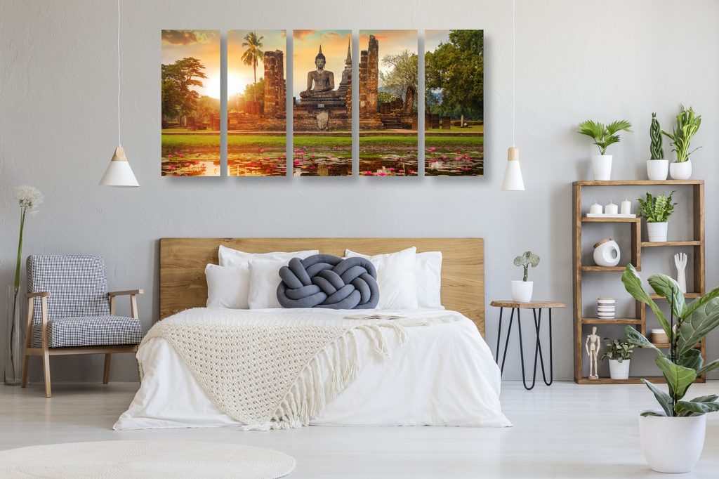 5-dielny obraz socha Budhu v Thajskom parku