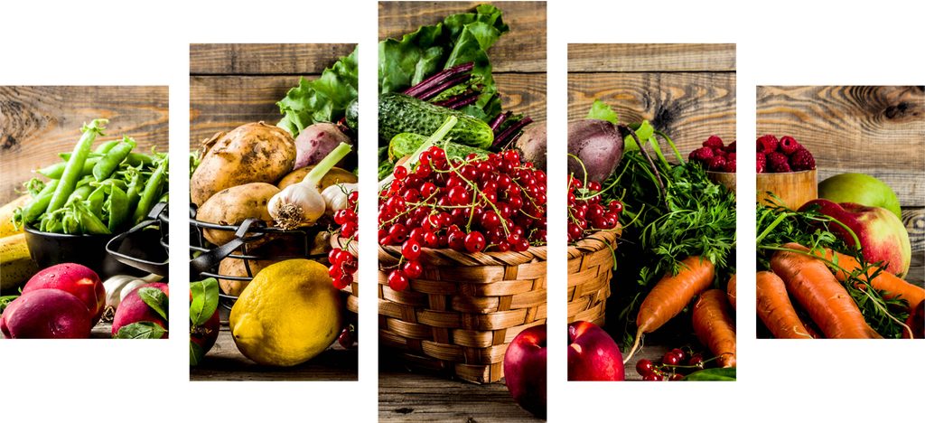 5-dielny obraz spleť čerstvej zeleniny a ovocia