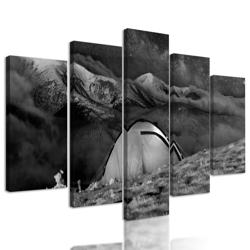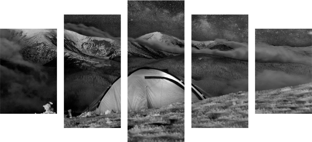 5-dielny obraz stan v zasneženej krajine v čiernobielom prevedení