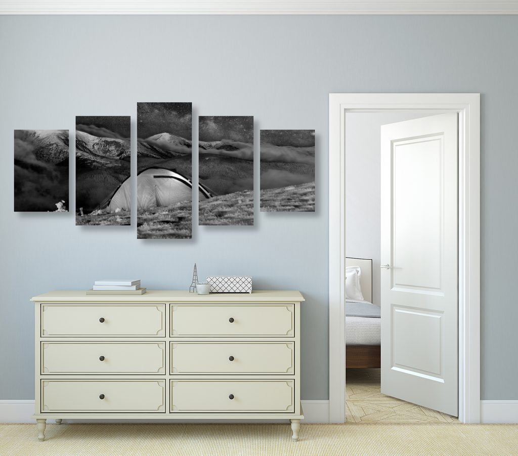 5-dielny obraz ázíjske moderné umenie v čiernobielom prevedení