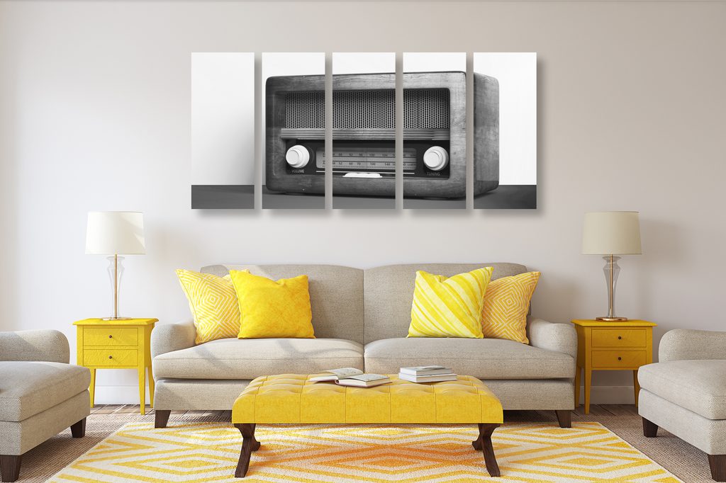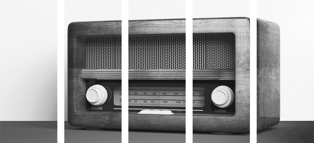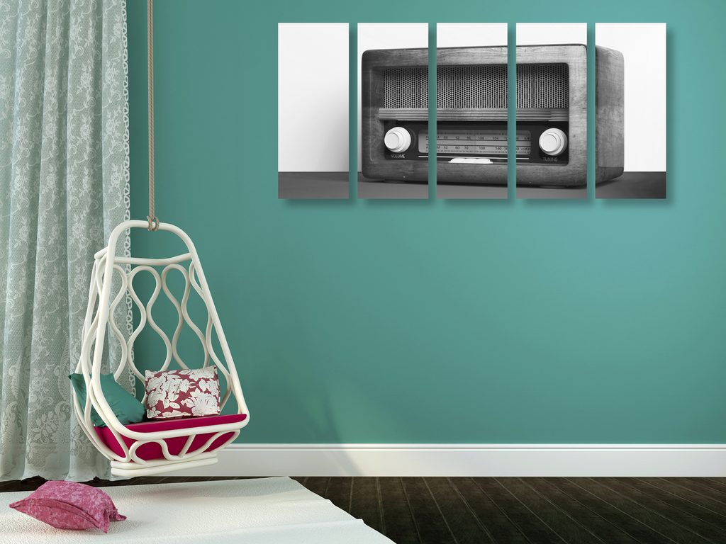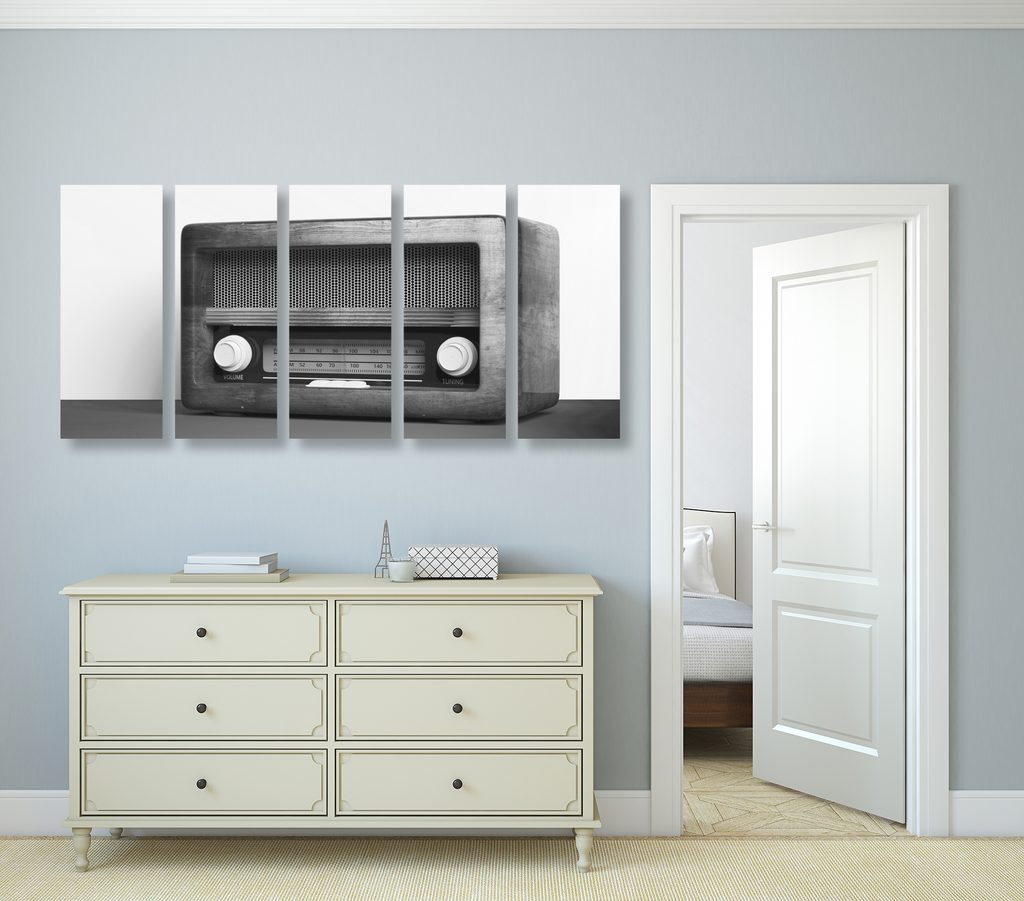 5-dielny obraz staré rádio v čiernobielom prevedení
