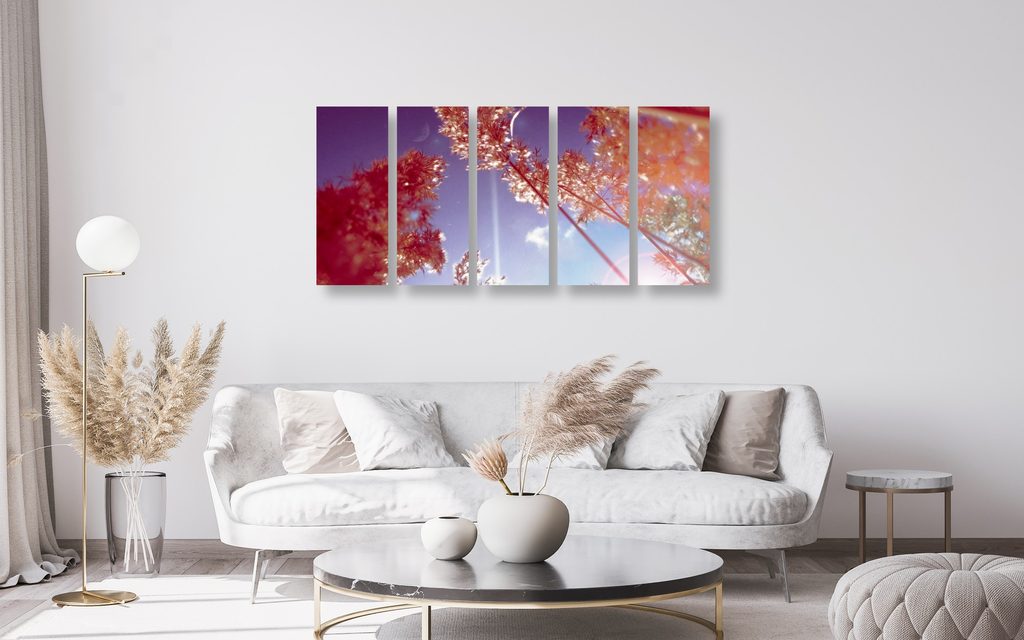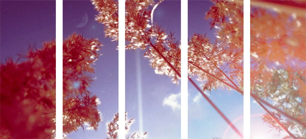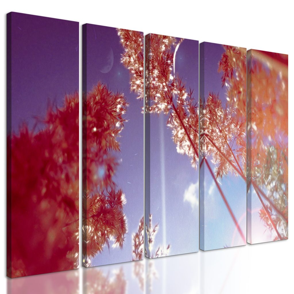 5-dielny obraz steblá trávy v lúčoch slnka