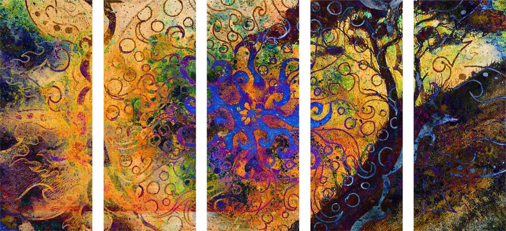 5-dielny obraz nádherná Mandala v zlatej farbe