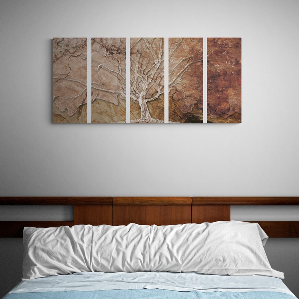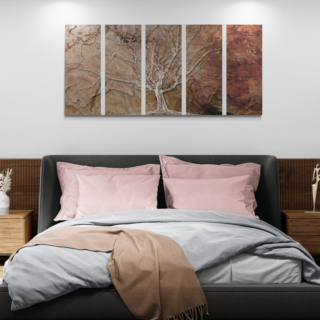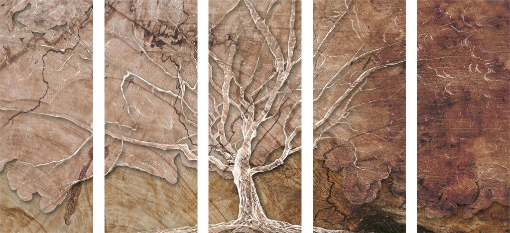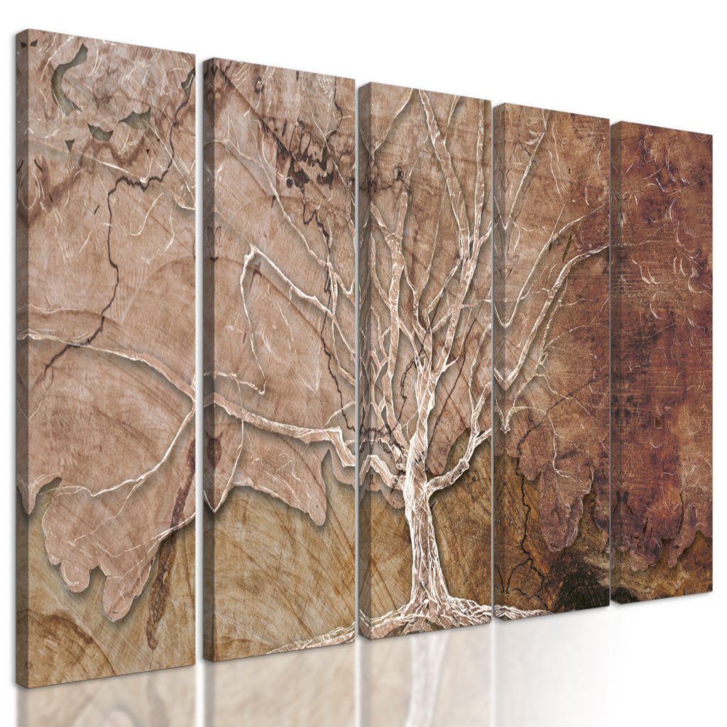 5-dielny obraz strom na drevenom pozadí