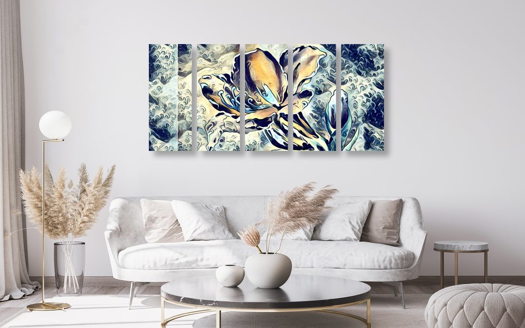 5-dielny obraz umelecká maľba pole plné nádherných kvetov
