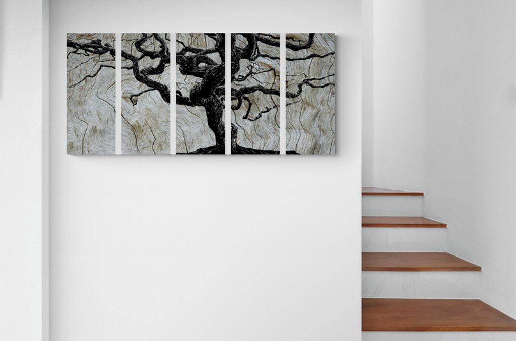 5-dielny obraz tajuplný strom na dreve