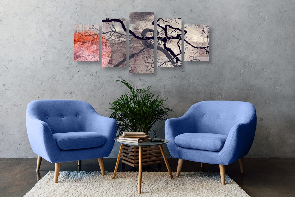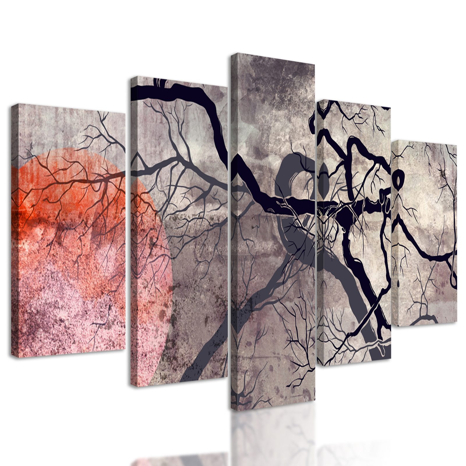 5-dielny obraz západ slnka nad malebnou krajinkou