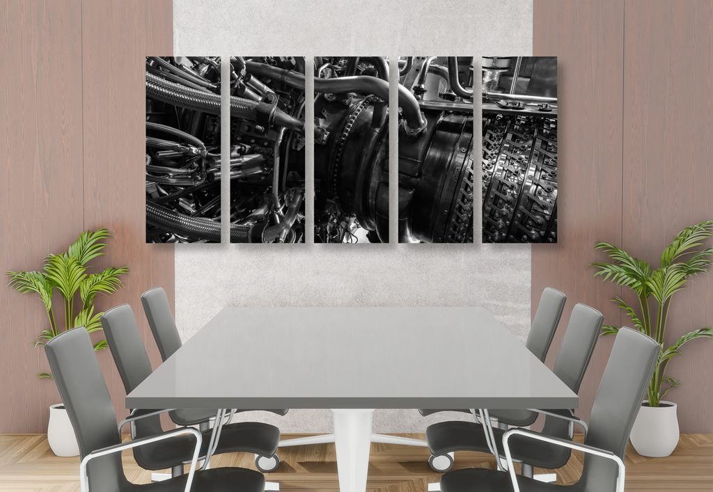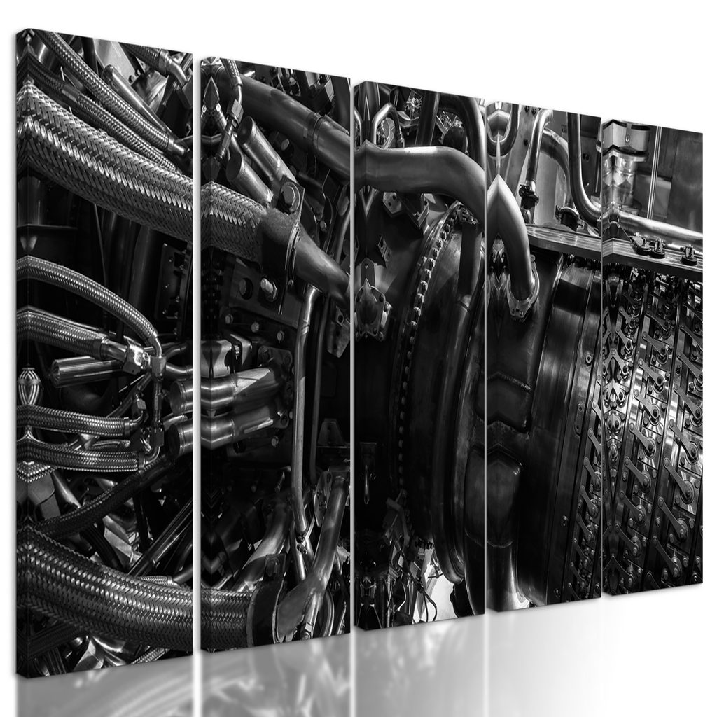 5-dielny obraz turbína v čiernobielom prevedení