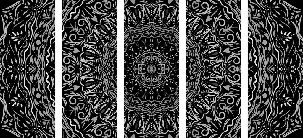 5-dielny obraz ukľudnujúca Mandala v čiernobielom prevedení