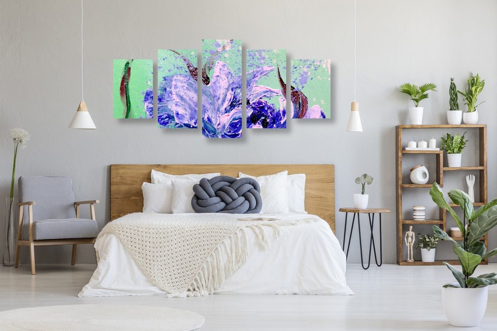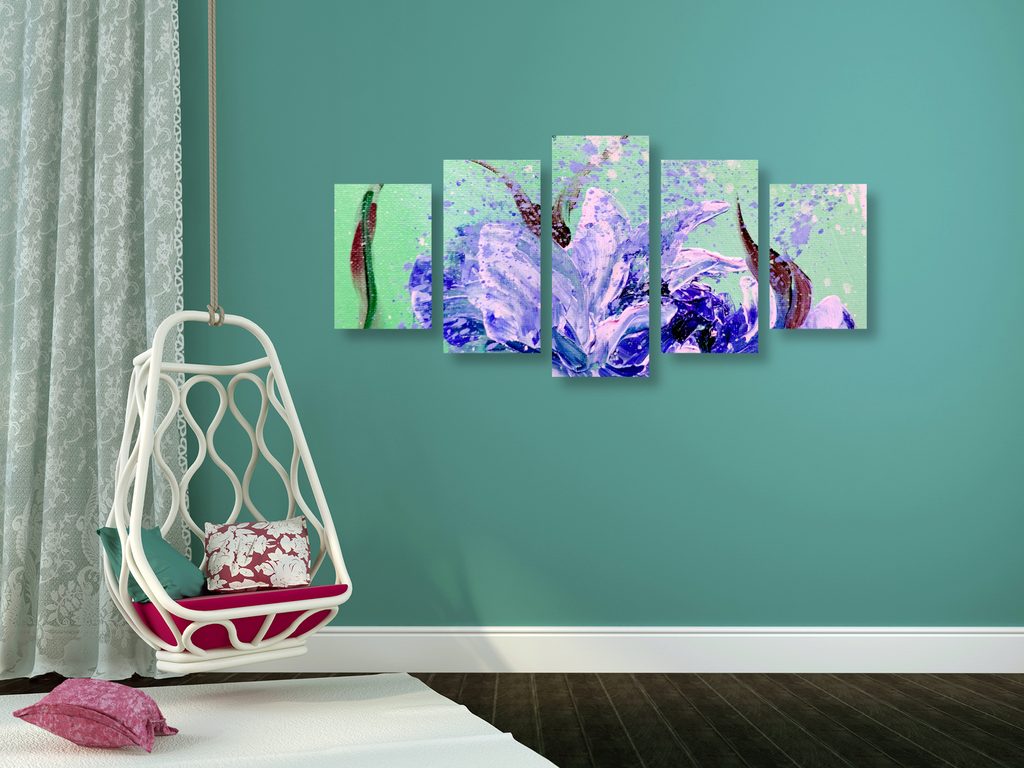 5-dielny obraz kvitnúca fialka