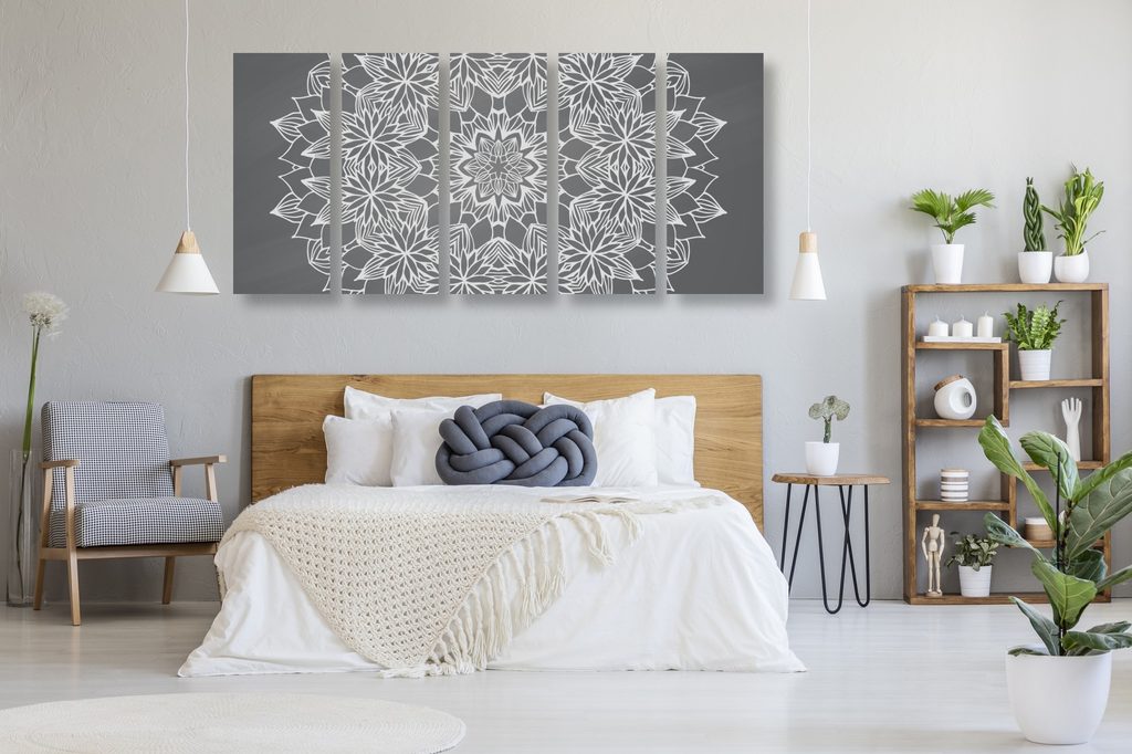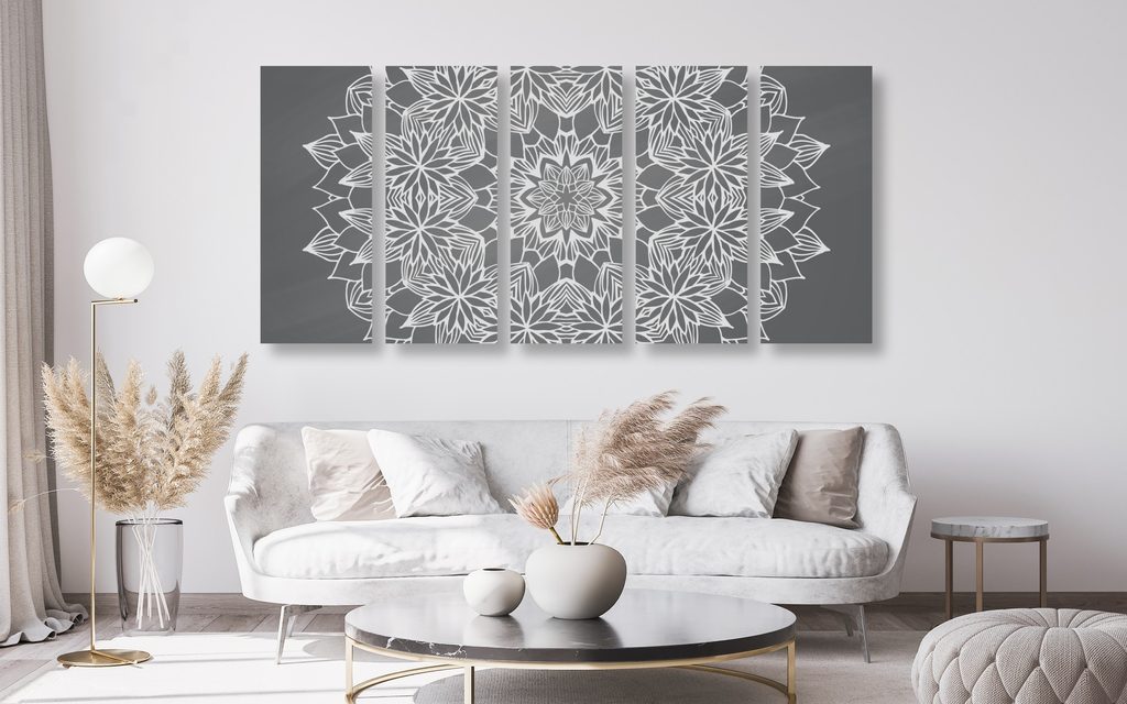 5-dielny obraz umelecká Mandala v čiernobielom prevedení