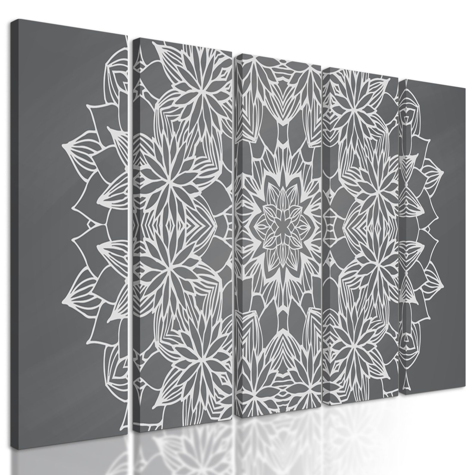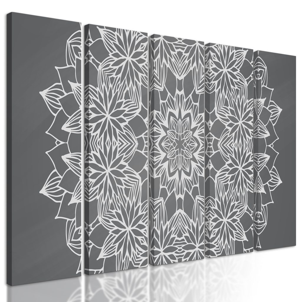 5-dielny obraz jemná kvetinová Mandala v čiernobielom prevedení