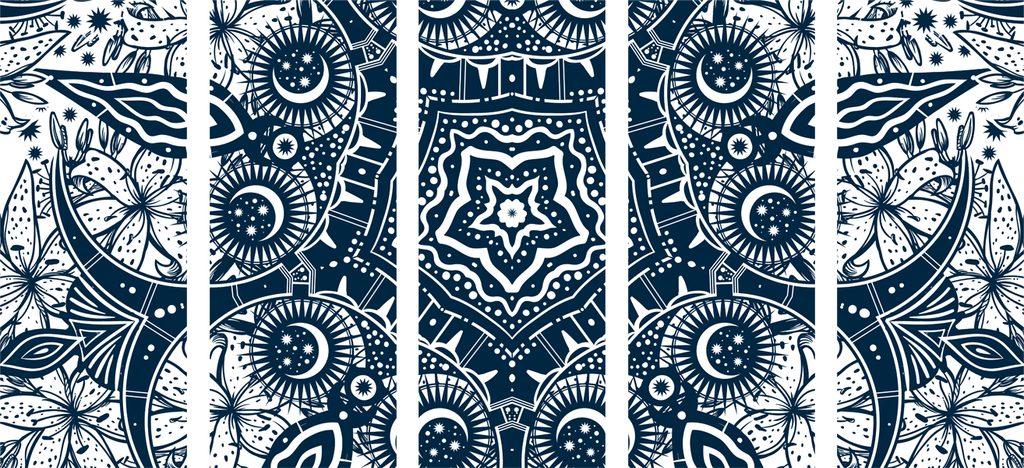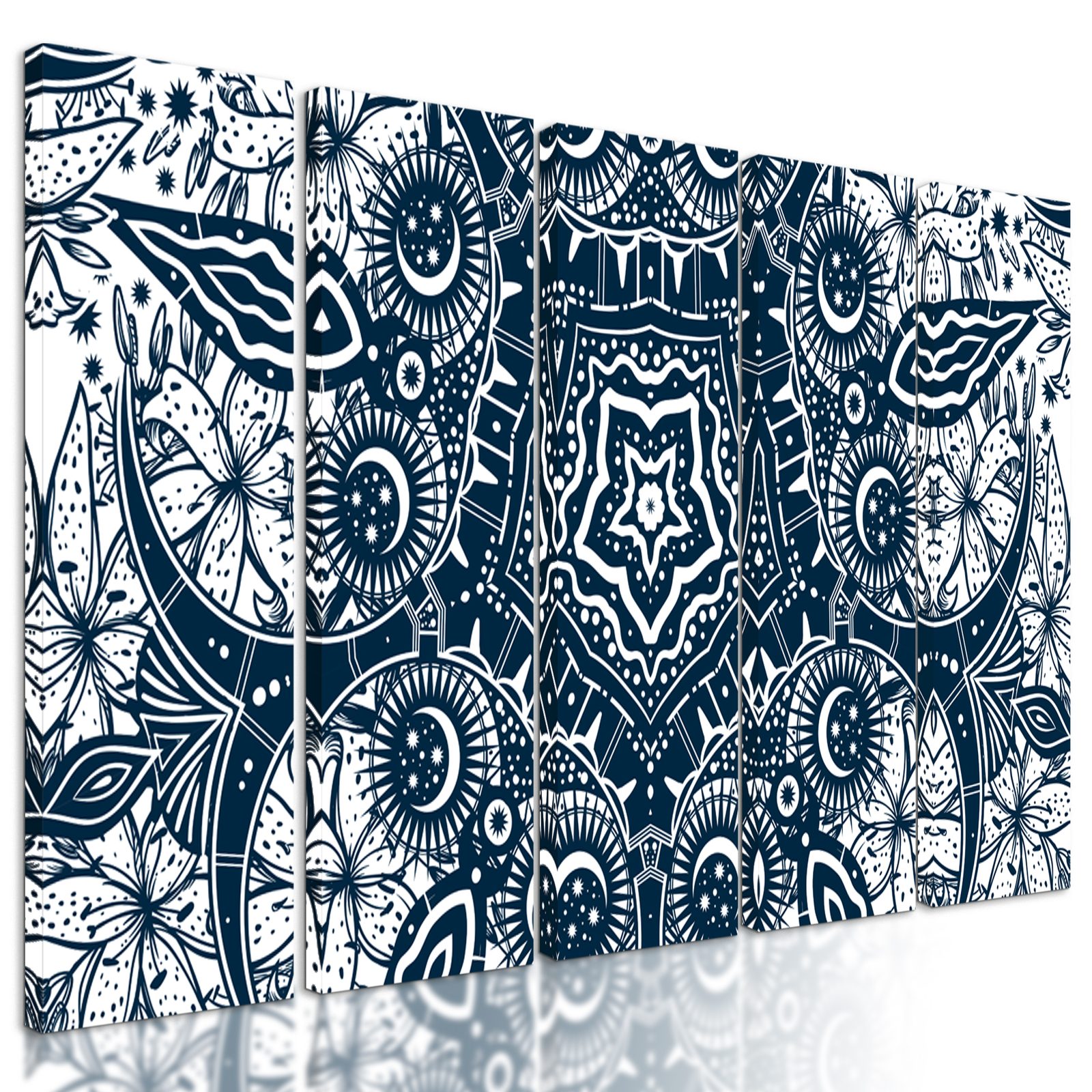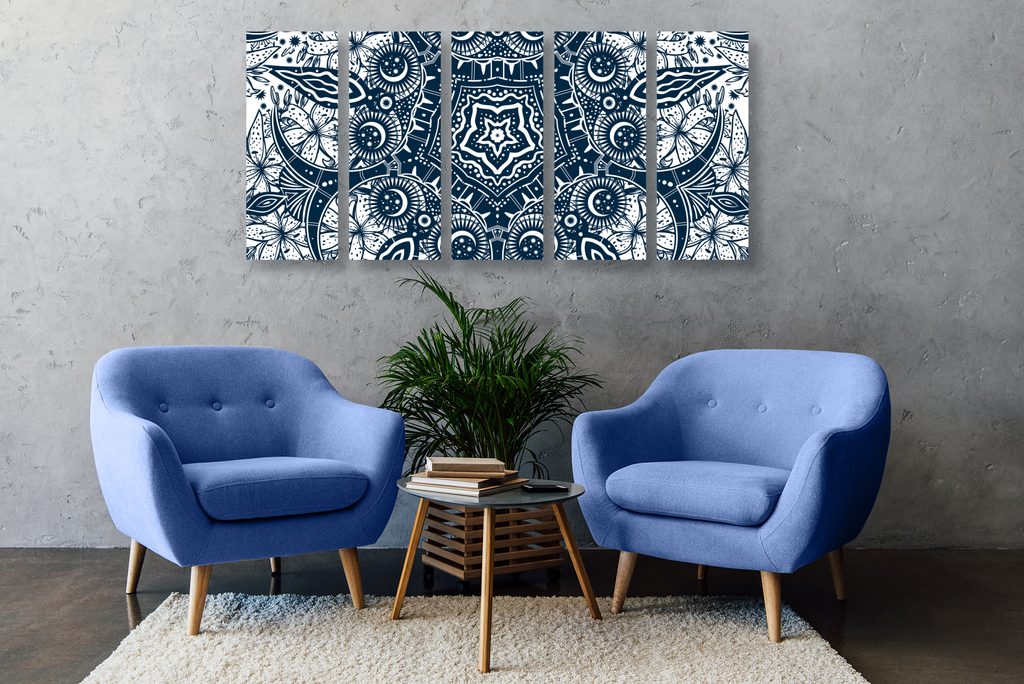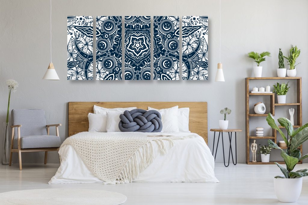 5-dielny obraz starodávna Mandala v čiernobielom prevedení